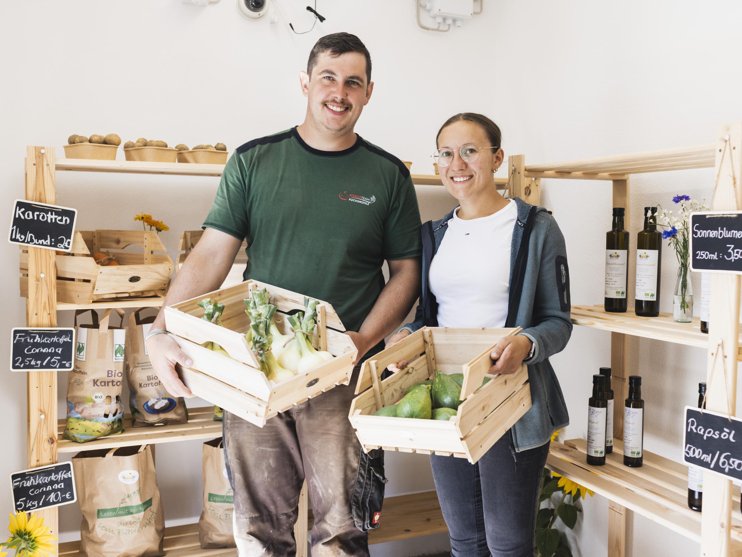 Am Betrieb selbst wurden die hofeigenen Produkte schon länger über ein kleines Verkaufshäuschen vermarktet. Doch mit Hilfe des Öko-Verfügungsrahmen 2025 konnte nun ein extra umgebauter Verkaufsraum geschaffen und ausgestattet werden.