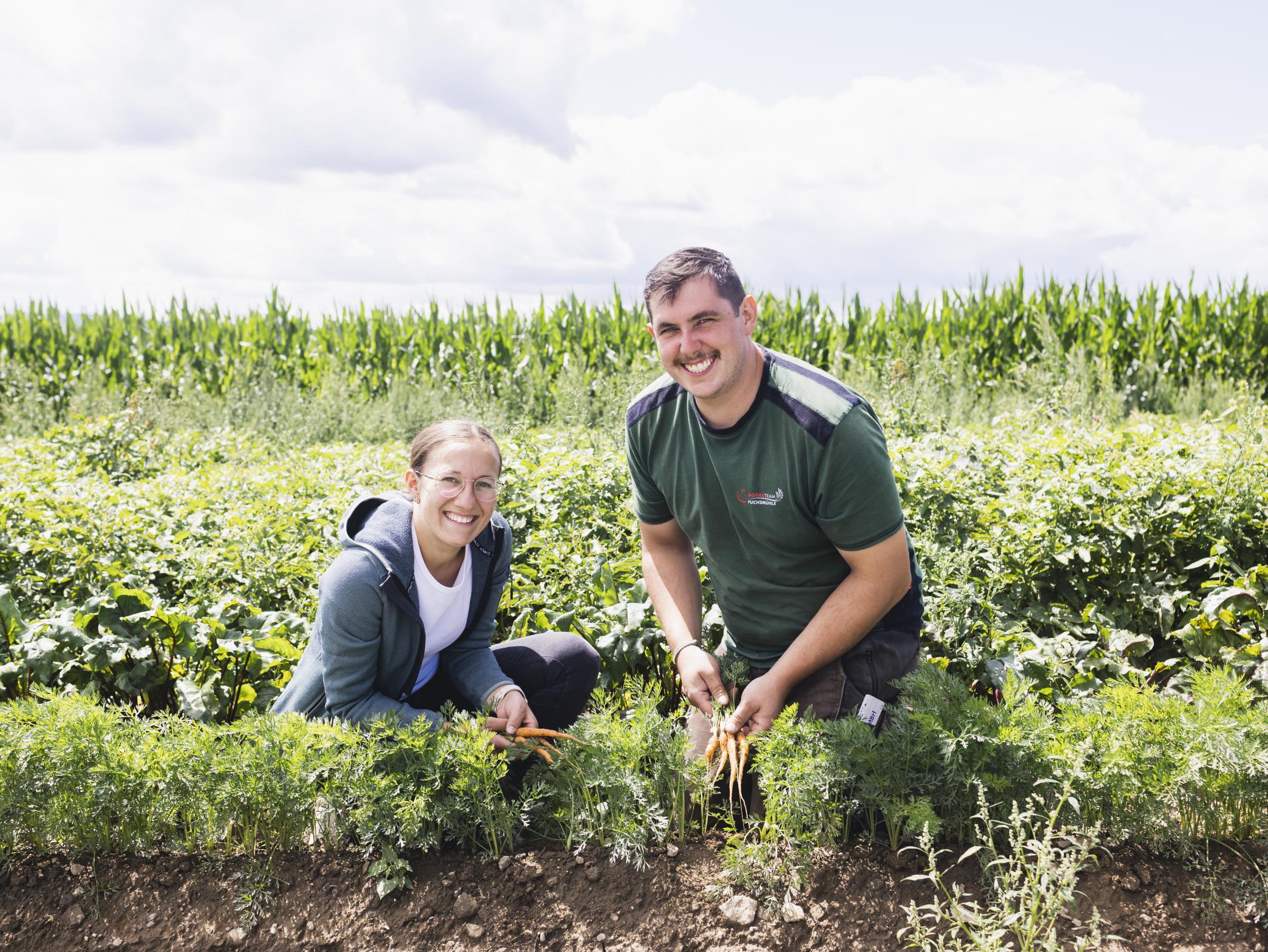 Der Hof läuft im Nebenerwerb, da auch Elisabeth Vollzeit außerhalb des Betriebs am AELF Kitzingen arbeitet. Tatkräftige Unterstützung bekommen beide von Johannes‘ Eltern und Geschwister. Diese Nähe zur Familie zeigt sich auch im täglichen Tun: Rita (Johannes’ Mutter) und Andrea (Johannes’ Schwester) bringen wertvolle Erfahrungen aus dem Gemüseanbau ein. Jedes Jahr werden neue Kulturen ausprobiert und getestet mit dem Ziel, die regionale Direktvermarktung zu stärken und weiter auszubauen.