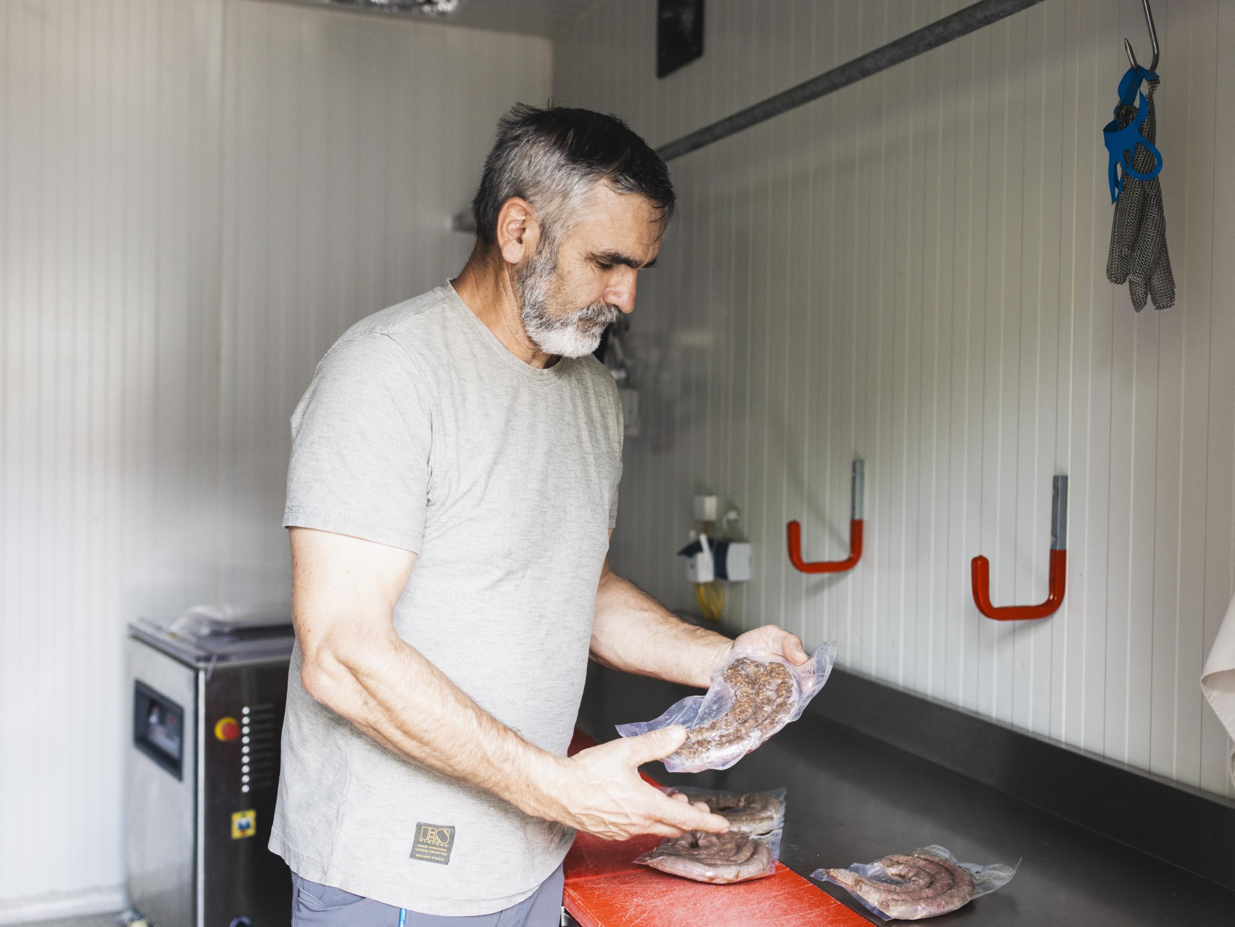 Ein besonders wichtiger Meilenstein war der Aufbau einer hofnahen, EU-zugelassenen Schlachtstätte direkt auf dem Hof. Seit Dezember 2023 ist diese offiziell in Betrieb und bereits rund 70 Rinder wurden dort bereits geschlachtet. Gemeinsam mit einem Metzger sorgt Klaus dafür, dass die Tiere ohne lange Transportwege geschlachtet werden können. Das minimiert Stress und garantiert, dass das Tierwohl vom ersten bis zum letzten Tag gewährleistet ist.