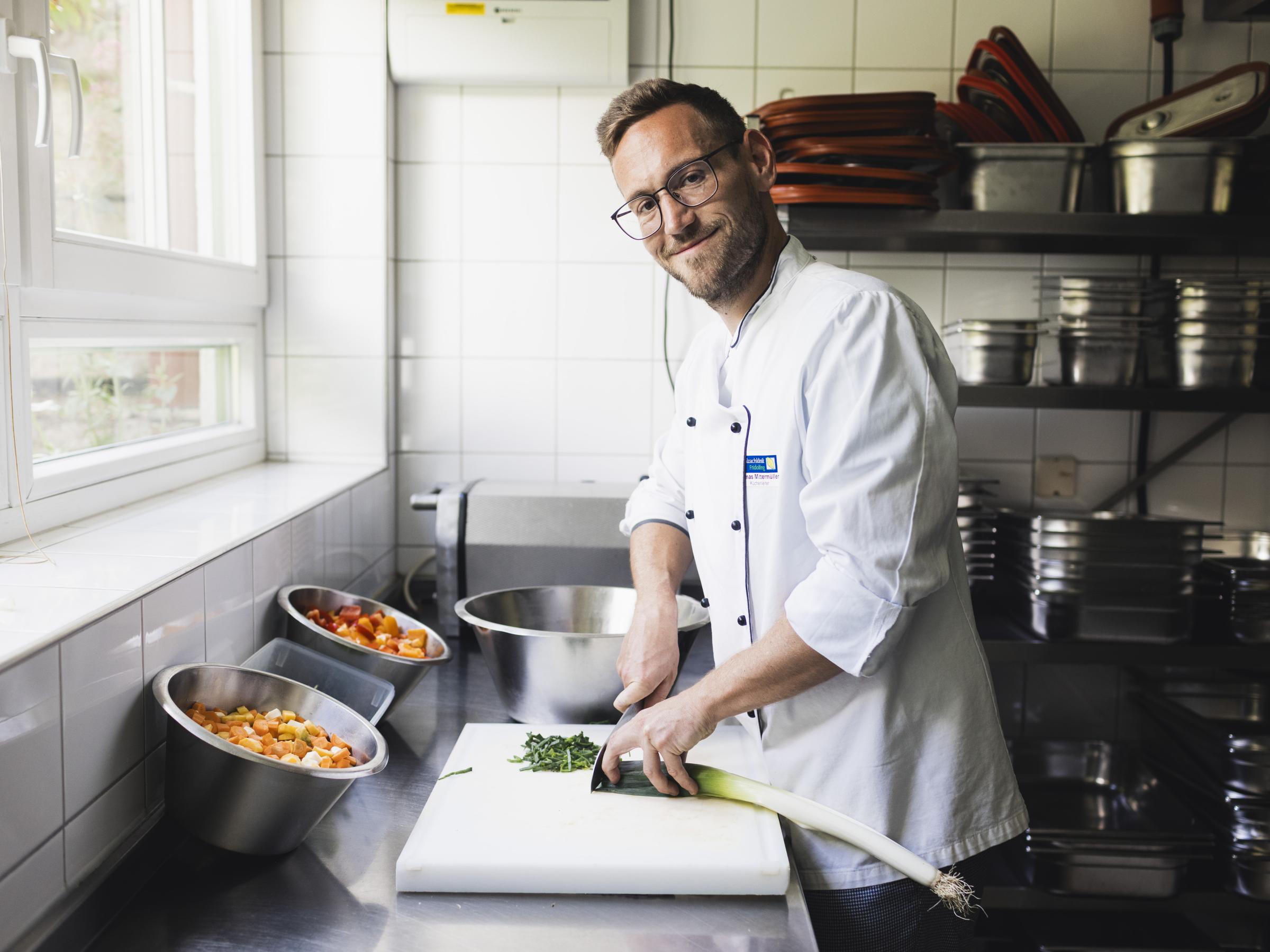 2023 übernahm Thomas Mittermüller von dem langjährigen Küchenchef Albert Spitz, der in Ruhestand ging, die Leitung des engagierten Küchenteams. Das Konzept der Klinik, handwerklich zu arbeiten und mit regionalen Zutaten der Saison frisch zu kochen, hatte ihn überzeugt, wie er sagt, die Stelle in Fridolfing anzunehmen. Die gut 25 Prozent Bio-Anteil seien das „Tüpfelchen auf dem I“, also das, was die Küche der Salzachklinik besonders auszeichnet. Ebenfalls hervorzuheben ist, dass viel selbst gemacht wird, zum Beispiel wird die Hühnerbrühe aus den Karkassen selbst zubereitet und die Kartoffeln werden von Hand geschält.