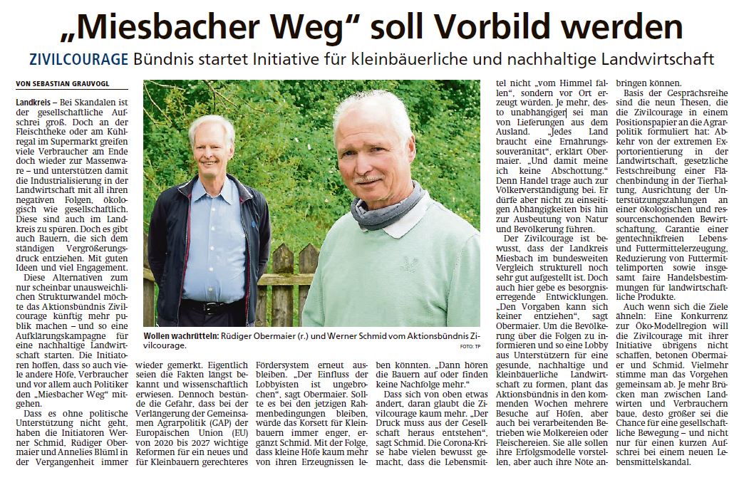 „Eine nachhaltige Agrarpolitik wäre möglich und notwendig“ so die Aussage vom Aktionsbündnis "Zvilcourage" und stellt dies mit Beispielen aus dem Landkreis Miesbach eindrucksvoll dar.