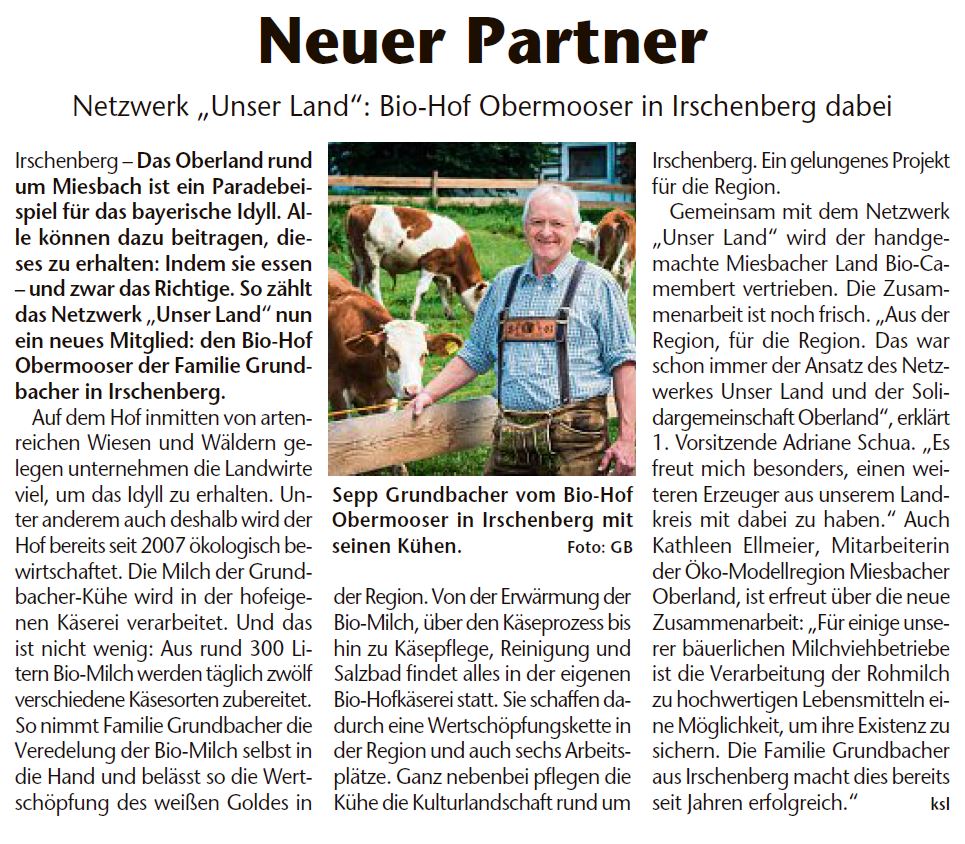 Daneben gibt es seit Jahren die Biomilch von UNSER LAND. Diese frische, länger haltbare Milch stammt von rund 110 bäuerlichen Familienbetrieben im Miesbacher Oberland und ist in vielen EDEKA- und REWE-Märkten zu finden. Eine der Milchlieferanten ist die Familie Stoib aus Wall, deren Jugend zur Zeit die Verpackung der Milch ziert.
