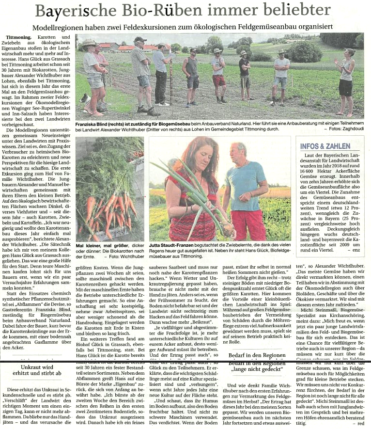Artikel „Bayerische Bio-Rüben immer beliebter“, Redaktion, erschienen am 20.10.2020 in der Südostbayerischen Rundschau