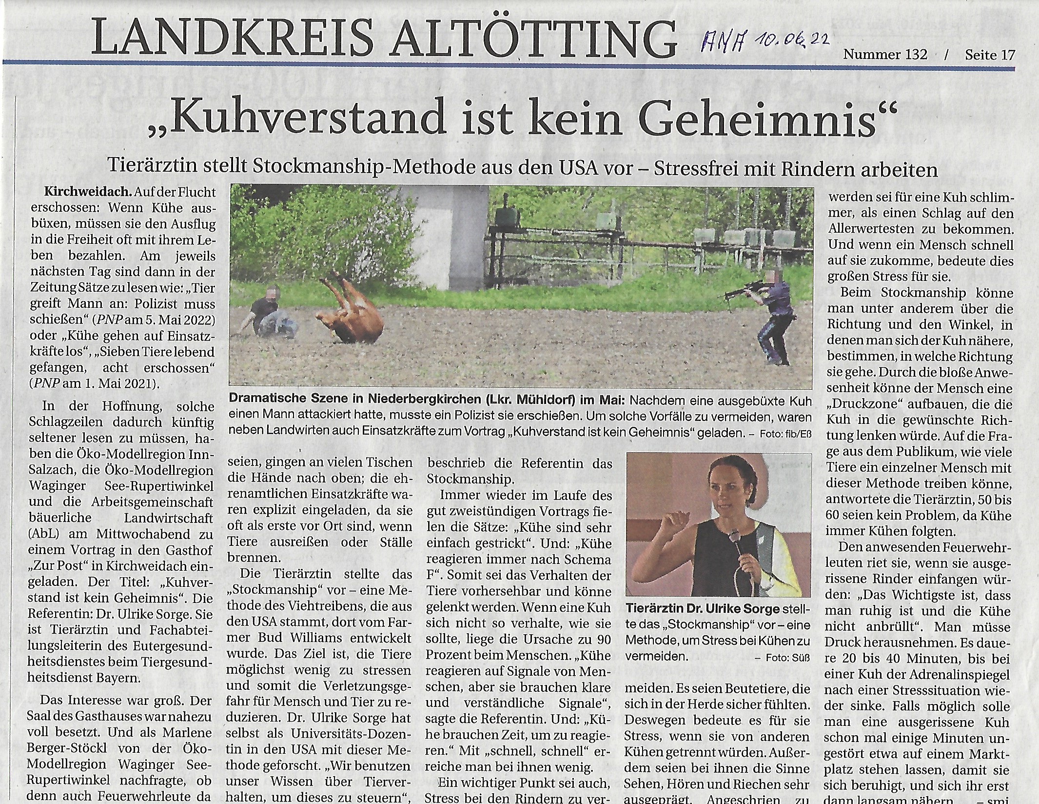Artikel von Michael Süß, erschienen am 10.06. 22 in der Südostbayerischen Rundschau („Kühe lenken leicht gemacht“)