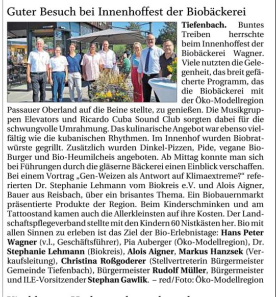 Bio mit allen Sinnen zu erleben ist das Ziel der Bayerischen Bio-Erlebnistage, die im September von der Landesvereinigung für den Ökologischen Landbau in Bayern kurz LVÖ ausgerichtet werden. Die Biobäckerei Wagner ist jedes Jahr mit seinem Innenhoffest mit dabei.