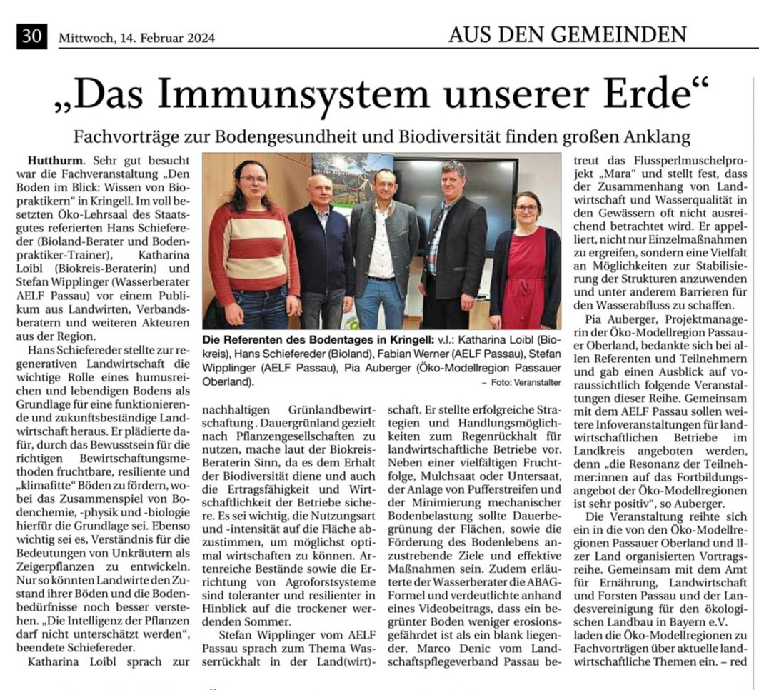 Die Veranstaltung reihte sich ein in die von den Öko-Modellregionen Passauer Oberland und Ilzer Land organisierten Vortragsreihe. Gemeinsam mit dem Amt für Ernährung, Landwirtschaft und Forsten Passau und der Landesvereinigung für den ökologischen Landbau in Bayern e.V. laden die Öko-Modellregionen zu Fachvorträgen über aktuelle landwirtschaftliche Themen ein.