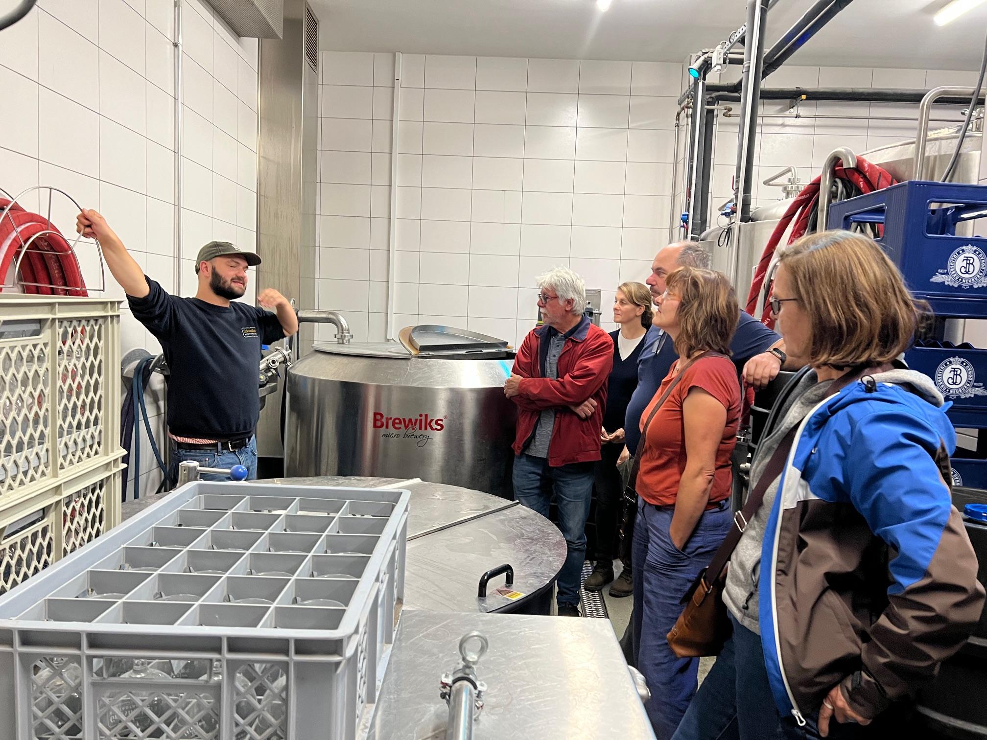 Bei der Führung durch die Brauerei erfuhren die Besucher wie der Prozeß des Brauens abläuft, wie die Brauerei eingerichtet wurde und alle konnten das selbst gebackene Brot aus Gersten-Trester probieren. Schließlich saß man noch bei einem küheln Bio-Hellen und Brotzeit zusammen.