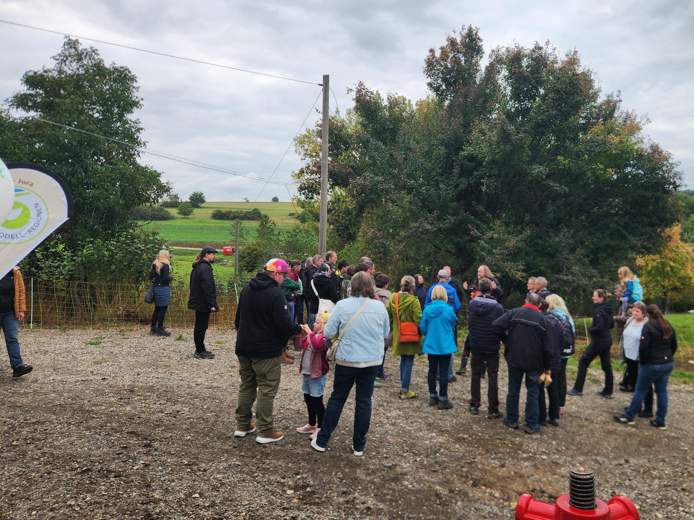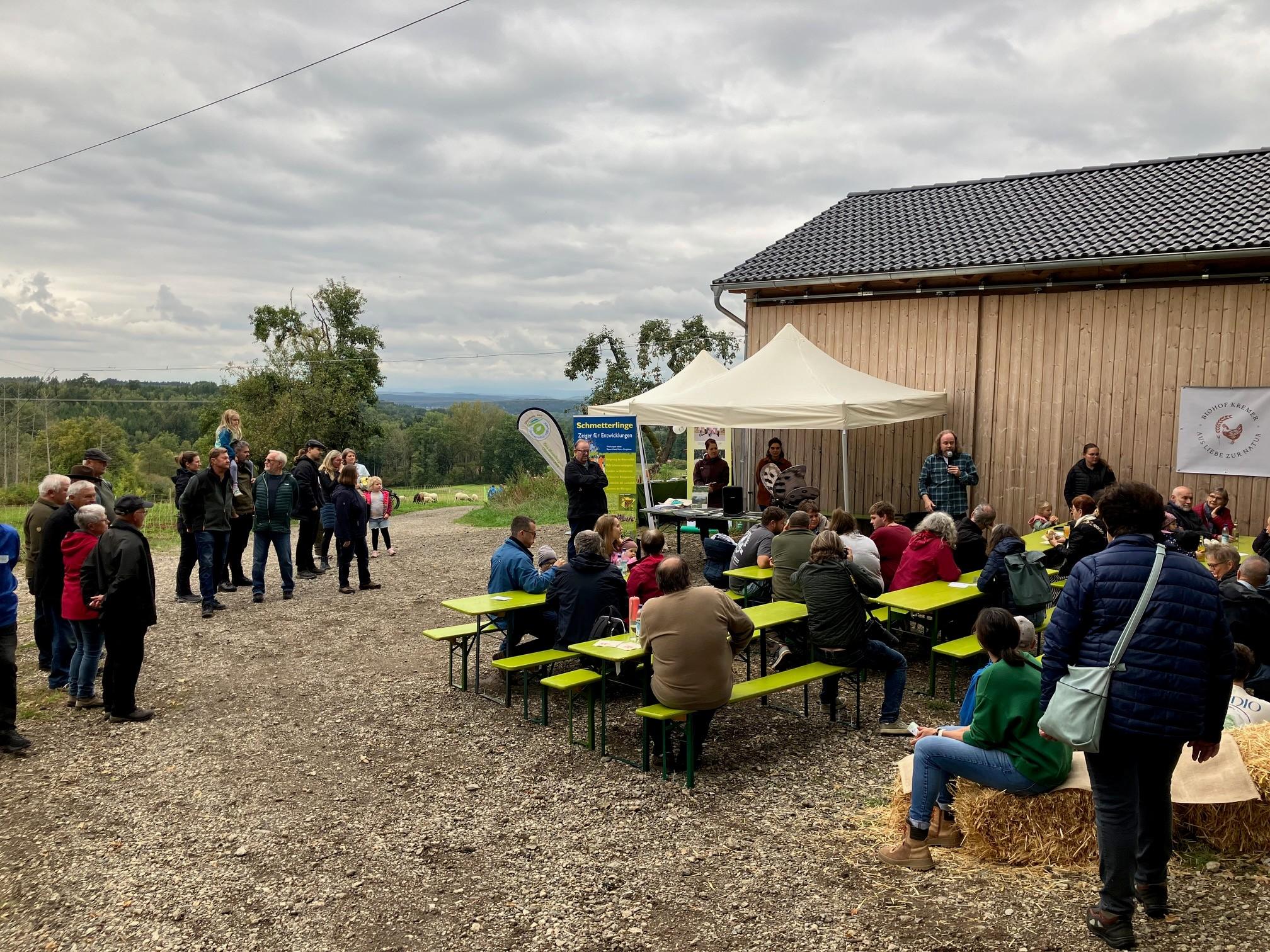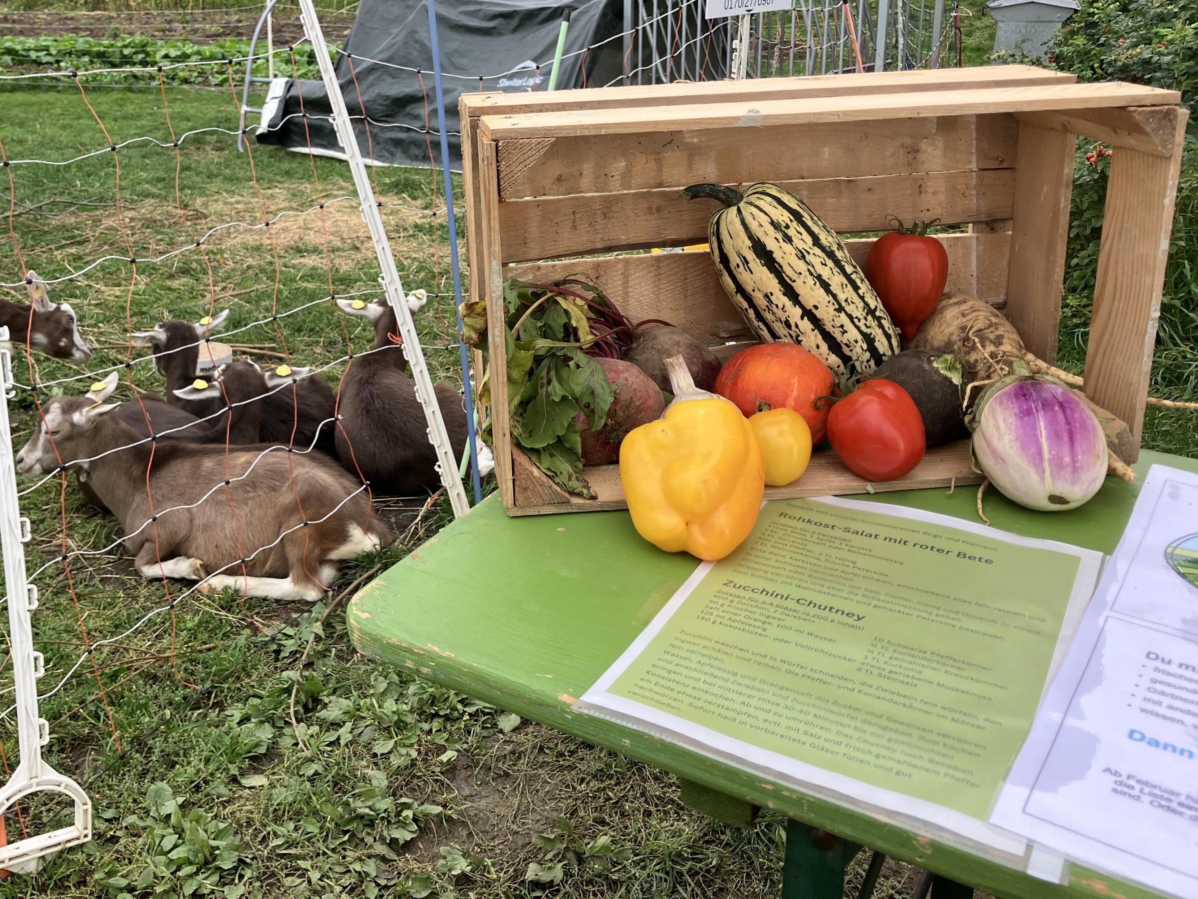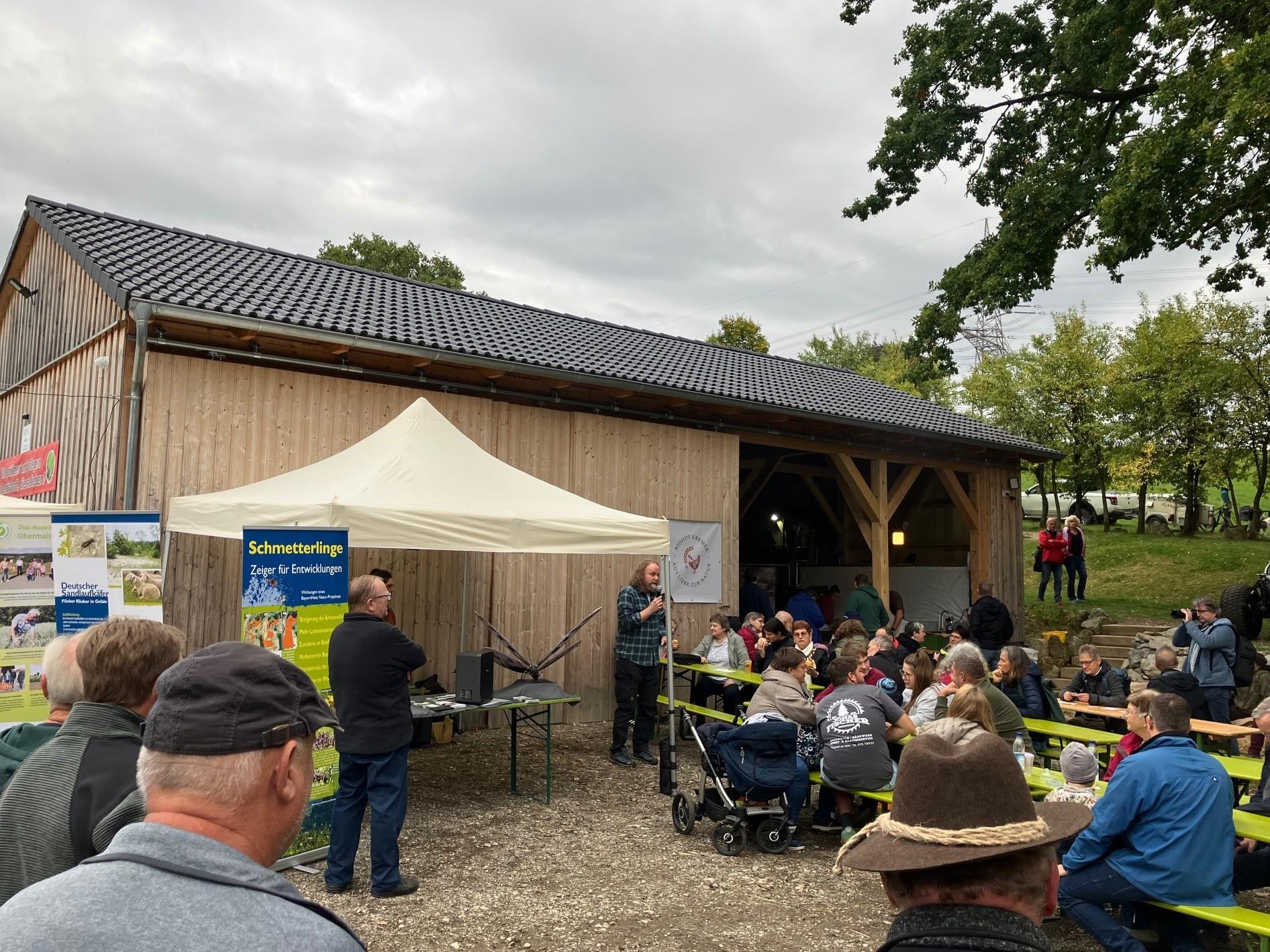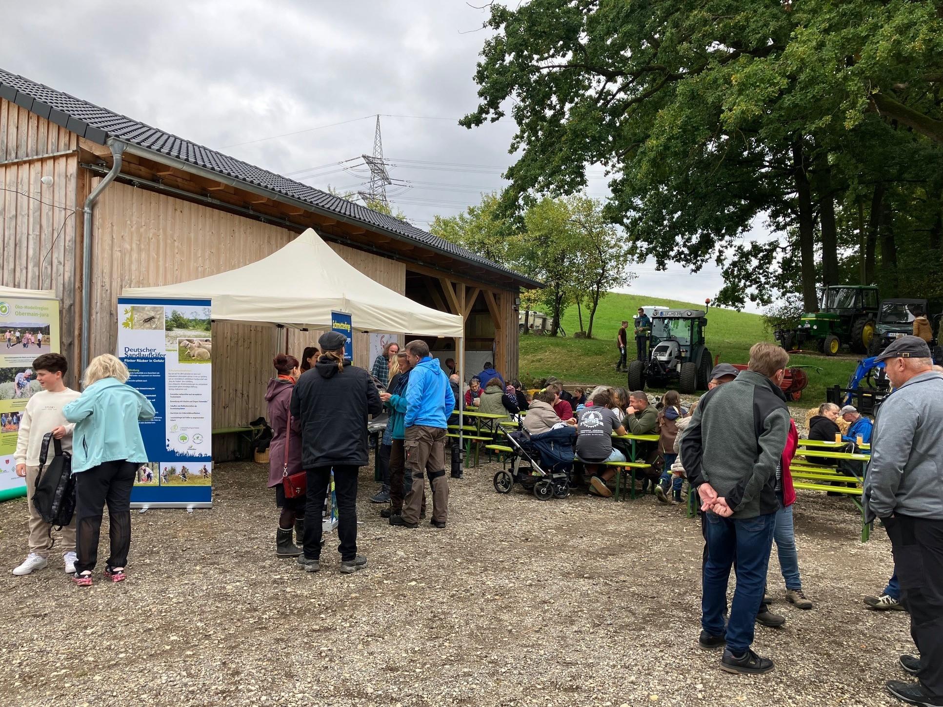 Die Biohöfe Isabell Kremer und Markus Dötzer boten schmackhafte Produkte aus eigener Erzeugung an und auch Bauernhofeis vom benachbarten Milchviehhof Schmitt aus Thelitz (Thelitzer Käsehütte) durfte nicht fehlen. Beim Genuss der leckeren Lammbratwurst und der anschließenden Wiesenführung wurde klar, dass der Genuss von Fleisch aus Weidehaltung gut für Landschaft, Klima und Biodiversität ist. Der Nutzen der Weidehaltung ist so vielfältig, weil er auch Nahrung und Lebensraum für Insekten sichert, durch Humusbildung dem Klima nutzt und menschliche Nahrung aus Flächen erzeugt, die nicht ackerbaulich genutzt werden können.