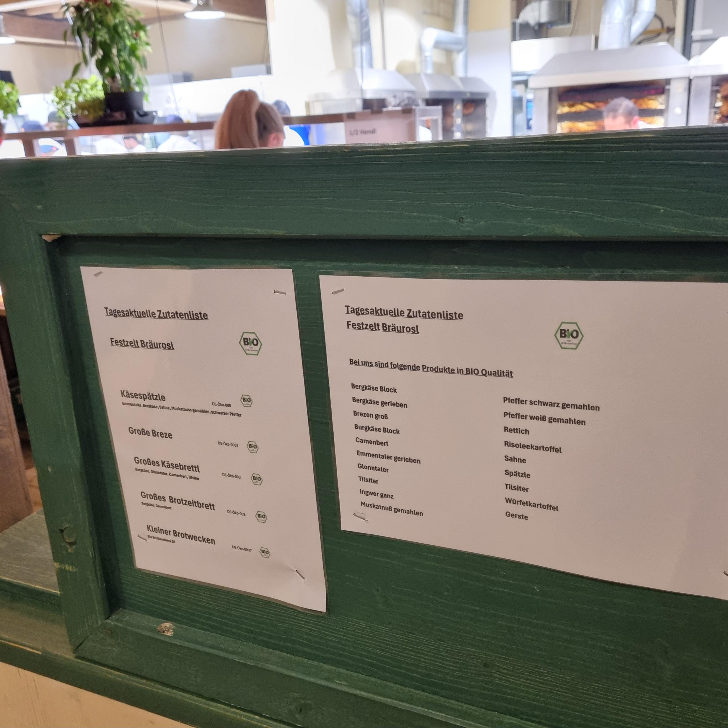 Die Münchner Initiative Nachhaltigkeit freut sich besonders darüber, dass die Speisekarten ein wachsendes Angebot an Bio-Gerichten zeigen. So gibt es inzwischen in 22 Zelten mindestens ein Bio-Gericht, und Bio-Käsespätzle sind in 14 Zelten zu finden – preislich vergleichbar mit den konventionellen Angeboten.