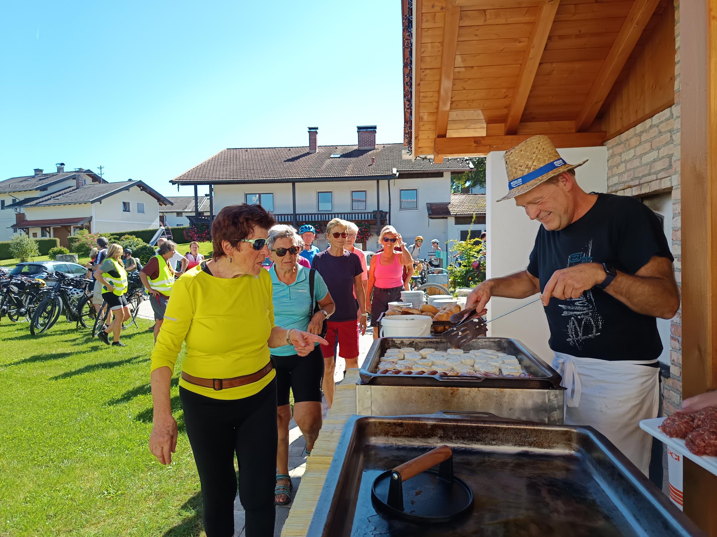 Gestärkt wurde sich im Vereinsheim Götzing mit lauter Produkten von Fridolfinger Betrieben: Semmeln aus Laufener Landweizen von Wolfgang Grösch, belegt mit Wildwürstln, Ziegentalern oder Rindfleischpflanzln, dazu Sauerteigbrot, heimisches Biobier oder Bio-Streuobstsaft. Möglich machten dies die beteiligten Biohöfe – ein kulinarischer Beweis für die regionale Wertschöpfung.