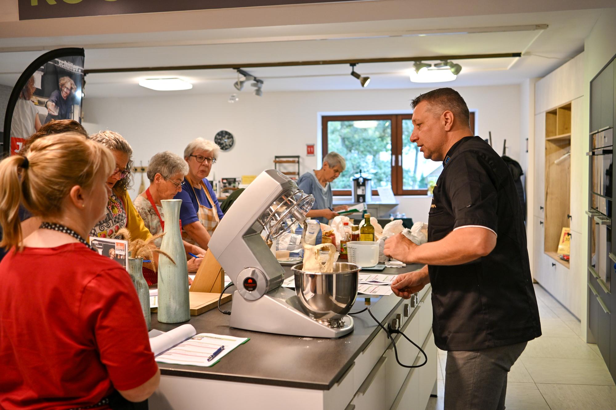 Besonders spannend war der praktische Teil: Unter Anleitung wurden verschiedene Brotsorten selbst geknetet, geformt und gebacken. Der Duft der frisch gebackenen Brote erfüllte bald die Kochschule im Möbelhaus Kellner – und beim anschließenden Verkosten waren sich alle einig: Das selbst gebackene Bio-Brot schmeckt einfach unvergleichlich.