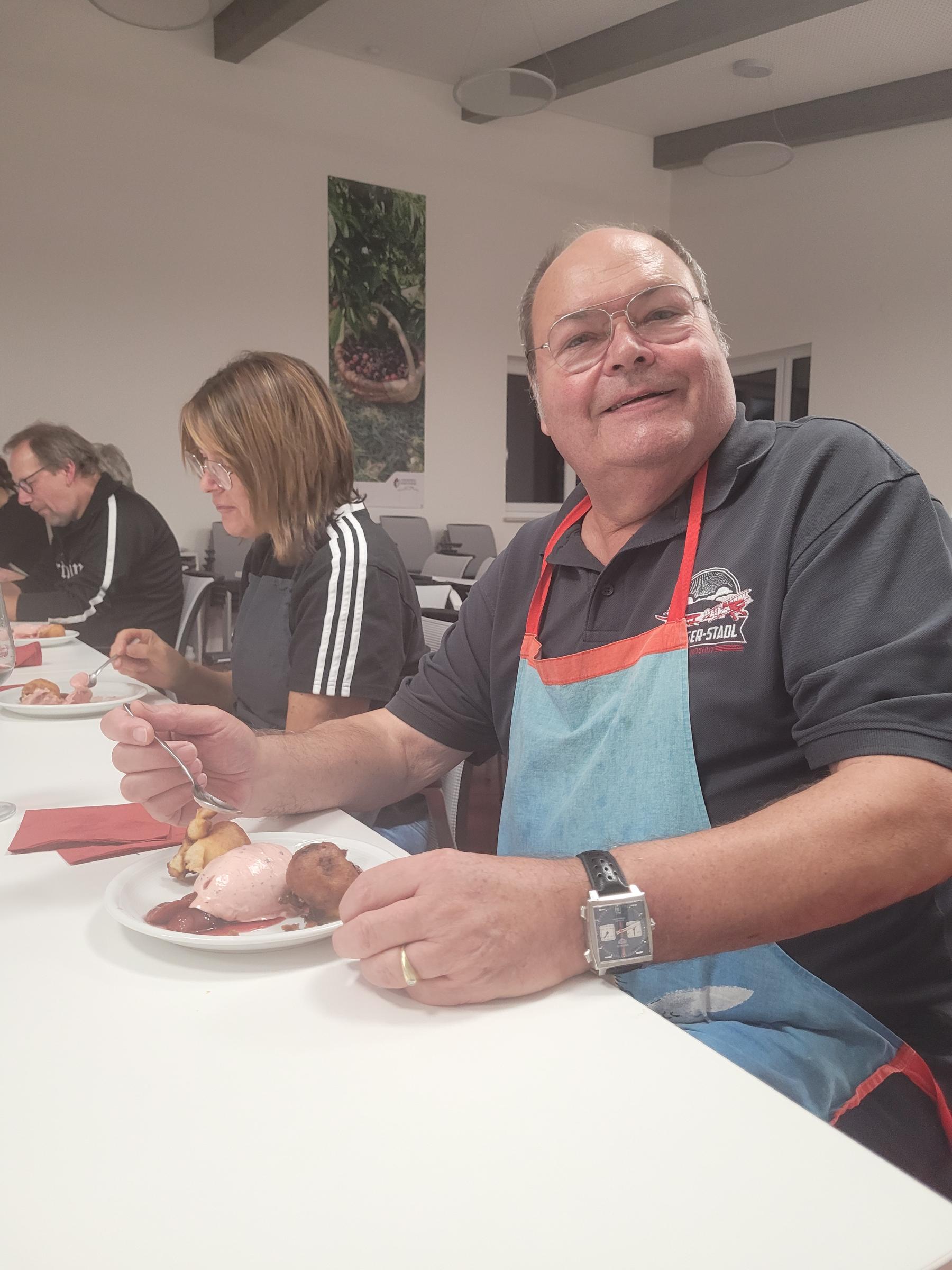 Im Mittelpunkt stand das Thema bioregionale Lebensmittel. Die Teilnehmer*innen erfuhren nicht nur, welche regionalen Schätze die Fränkische Schweiz zu bieten hat, sondern auch, wie die Öko-Modellregion die Erzeuger unterstützen möchte. Das kulinarische Highlight bildete ein dreigängiges Menü: Es gab Brezenködelsalat mit Steinpilzen, Wachsei und Brüstchen vom Biohuhn vom Zebuhof Gath in Weilersbach, ein gratiniertes Flansteak vom heimischen Biorind, dem Wagyu Rind vom Betrieb Beyer in Engelhardsberg, mit Gartengemüse und soufflierter Kartoffel. „Das Fleisch des Wagyu Rindes zeichnet sich durch seinen hohen Anteil an guten und schmackhaften Fetten aus,“ verrät Chefkoch Günter Sponsel. Den süßen Abschluss bildet Zwetschgenknödel mit Rotweinzwetschgensorbet mit Zwetschgensauce. „Dreimal Zwetsche in einer perfekten Kombination“, schwärmt Öko-Modellregion Managerin Ariane Volkmann, die seitens der Öko-Modellregion die unterschiedlichen Produkte vorstellen und den Abend begleiten durfte.