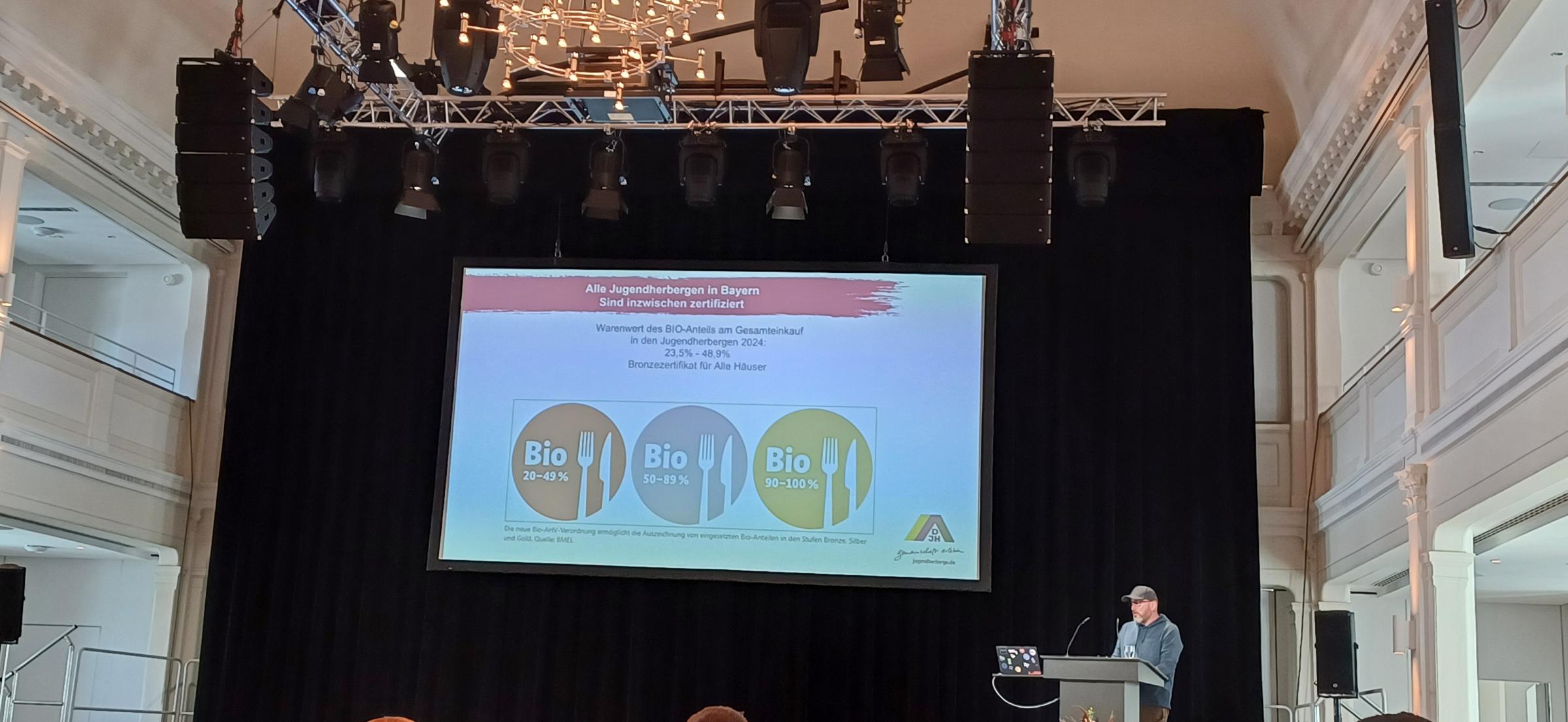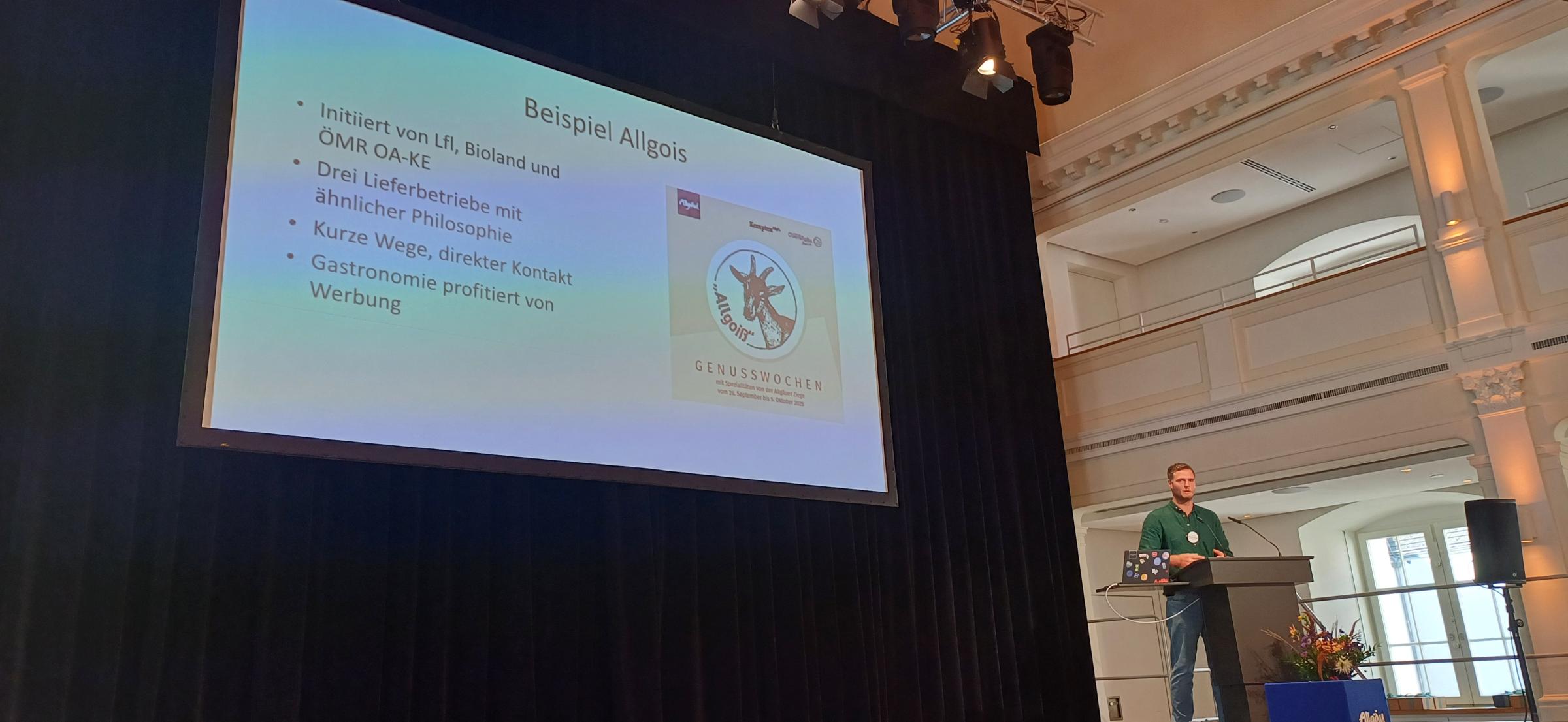 In ihren Impulsvorträgen boten Bio-Spitzenköchin Nina Meyer und Direktvermarkter Johannes Egger Einblicke in die gelungene Vermarktung von regionalen Bio-Produkten in die Gastronomie. Auch Simon Jörg von der Jugendherberge Oberstdorf - inzwischen kommen hier 100% Bio-Produkte zum Einsatz - veranschaulichte, was für ihn bei der Umstellung auf Bio wichtig war.