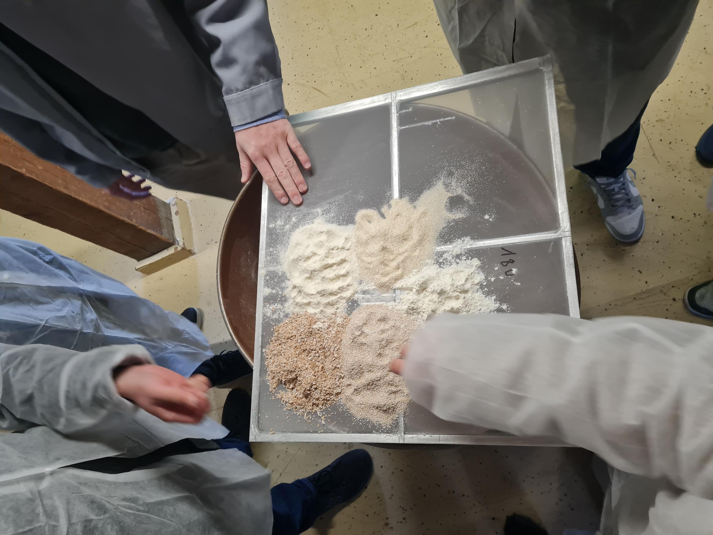 Die angehenden Köche durften sich dabei nicht nur das Verfahren aus der Nähe anschauen, sondern auch die unterschiedlichen Mahlprodukte haptisch begutachten. Von grobem Mehl bis hin zu feinstem Pudermehl – die Schüler konnten die Veränderungen in der Textur und Konsistenz direkt nachvollziehen und so ein besseres Verständnis für die Unterschiede der verschiedenen Mehltypen entwickeln.