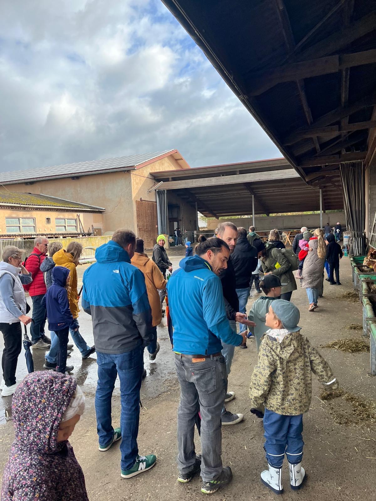 Neben der sonnigen Bio-Höfe-Radtour entlang der Werrn sowie dem Vortrag von Dr. Felix Prinz zu Löwenstein über die Gestaltung von Agrarlandschaften in Zeiten der Klimakrise Mitte September, gab es weitere Highlights im Oktober: Die Hofführung auf dem Naturlandhof Wahler in Bergrheinfeld bot Einblicke in die Rinderhaltung und den ökologischen Gartenbau. Um dem großen Andrang gerecht zu werden, wurden die zahlreichen Besuchenden in kleinen Gruppen über den Hof geführt. Ebenso lehrreich war die Betriebsführung auf dem Biohof Schleerieth, wo die Gäste nicht nur die Nudelproduktion und Hühnerhaltung bestaunen, sondern auch in geselliger Runde bei Kaffee und Kuchen ins Gespräch kommen konnten. Solche Begegnungen zeigten, wie wichtig der direkte Austausch zwischen Erzeugenden und Verbrauchenden ist.