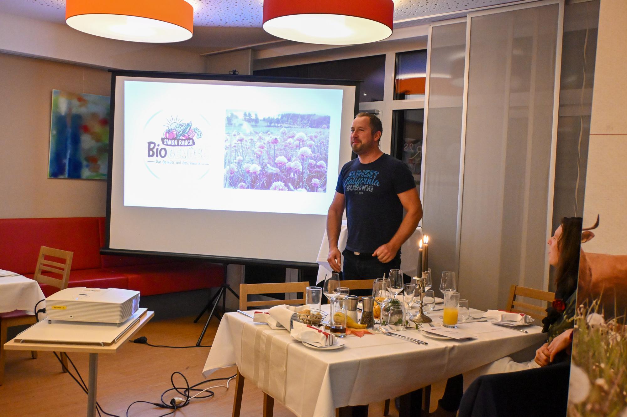 Einen spannenden Einblick in die Praxis des Bio-Gemüseanbaus gab Simon Rauch, Betreiber eines Biohofs und SoLaWi aus Krummennaab (bio-simon.de). Mit eindrucksvollen Bildern stellte er seinen Betrieb vor und zeigte, wie vielfältig, nachhaltig und gemeinschaftlich moderne Landwirtschaft heute gestaltet werden kann.