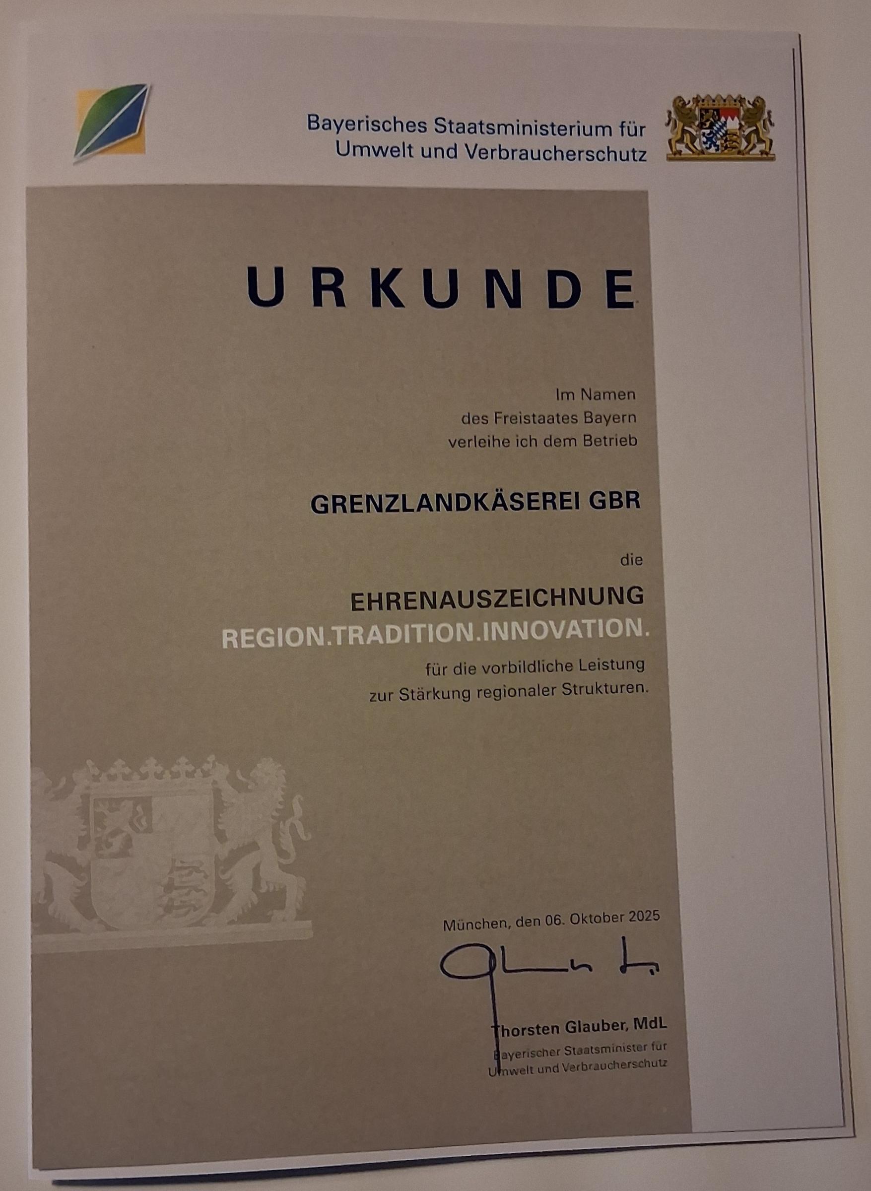 Im April 2025 wurde durch Bernd Sommer, Bürgermeister von Waldsassen und IKom Vorsitzender, das Projekt für die Ehrenauszeichnung in München vorgeschlagen. Das Projekt lässt die Wertschöpfungskette Milch im Landkreis Tirschreuth wieder aufleben. Da seit 2004 die komplette Milch aus dem Landkreis expotiert wird. Ein weiterer Vorteil ist jedoch auch zu nennen. Durch den Käse können die Landwirte ein bewährtes Produkt nun selbst an den Verbaucher bringen. Dadurch erhöht sich nicht nur die Wertschöpfung für den Hof, sondern bringt auch die Möglichkeit die eigene Arbeit sichtbarer zu machen.