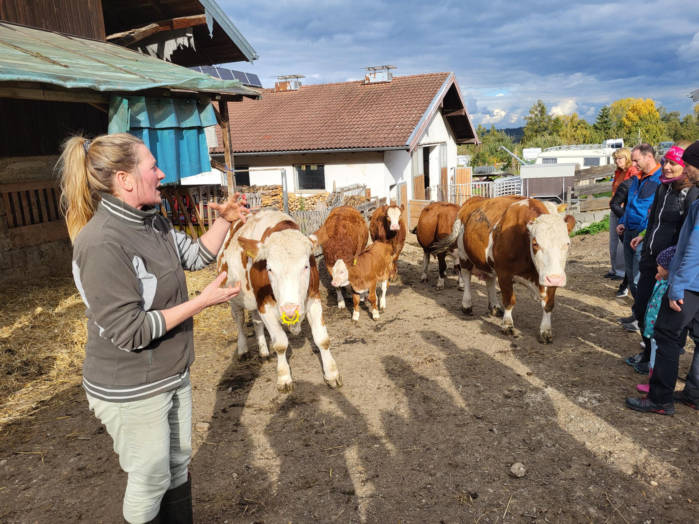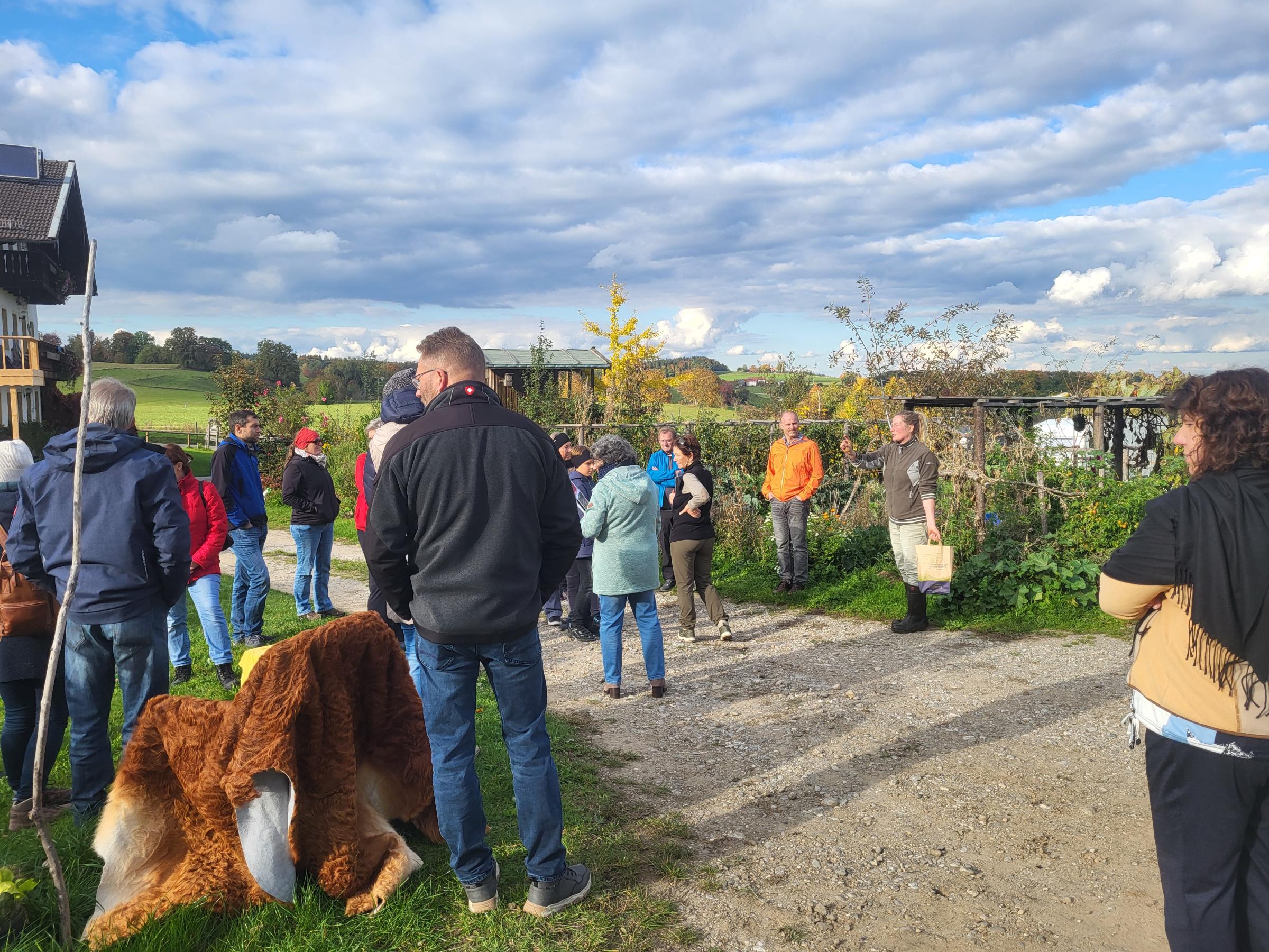 Dass der Hof zwar klein, aber trotzdem am Puls der Zeit ist, zeigt sich auch an den nahen und ferneren Zukunftsplänen. „Wir haben uns bereits eigenständig über das Schweizer Keyline-Konzept informiert. Das heißt, zum Schutz und Erhalt des Grundwasserspeichers, der in Deutschland heute schon stark leidet, wollen wir in Zusammenarbeit mit dem Landschaftspflegeverband versuchsweise Streuobstreihen entlang wichtiger Höhenlinien auf unseren Weiden anlegen“, so die Bäuerin. Dafür gab es ein Lob von der Projektmanagerin der Ökomodellregion: „Es ist noch wenig bekannt, dass ökologisch bewirtschaftete Höfe durch die gute Wasseraufnahmefähigkeit der Böden und durch vielfältige Strukturen wie Hecken, Obstbäume oder Agroforstkulturen einen großen Beitrag für den Schutz vor Starkregen und Dürre leisten können“, ergänzte Berger-Stöckl. „Das macht heute Arbeit und kostet Geld, ist aber eine sehr sinnvolle Investition in die Zukunft und erbringt spürbare Gemeinwohlleistungen, auch für das unterhalb gelegene Dorf“.