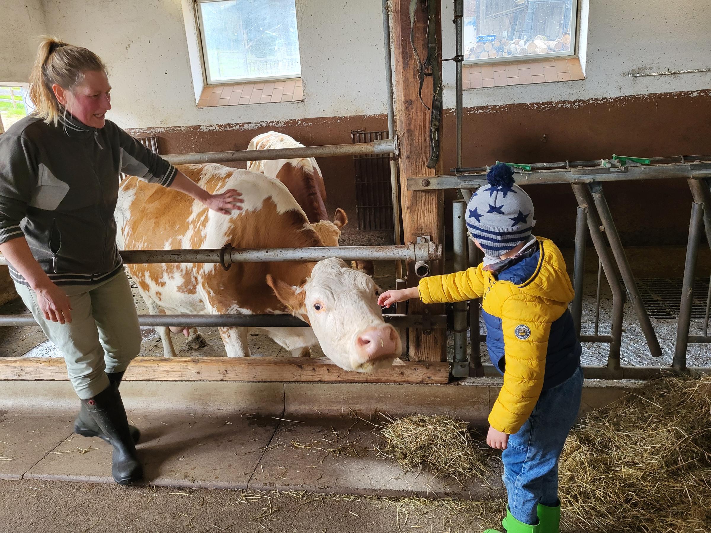 „Die Umstellung von der Milchviehhaltung auf ein neues Hofkonzept mit Mutterkuhherde war kein einfacher Weg für uns alle, aber den hatte ich mir in den Kopf gesetzt, weil das ein sehr natürliches Haltungskonzept mit viel Freilauf für alle Tier-Altersgruppen ist. Ich komme selbst nicht aus der Landwirtschaft und hab mir im Austausch mit meinen Schwiegereltern, meinem Mann, Nachbarshöfen und dem Tierarzt über „Learning bei doing“ alles selbst angeeignet“, so die Bäuerin vom „Heinrichhof“ in Hucking, die inzwischen auch einige Fachkurse besucht hat. „In die Kühe hab ich mich geradewegs verliebt – sie gehören zur Hoffamilie fest dazu, alle haben ihre Namen und ihre Besonderheiten“.