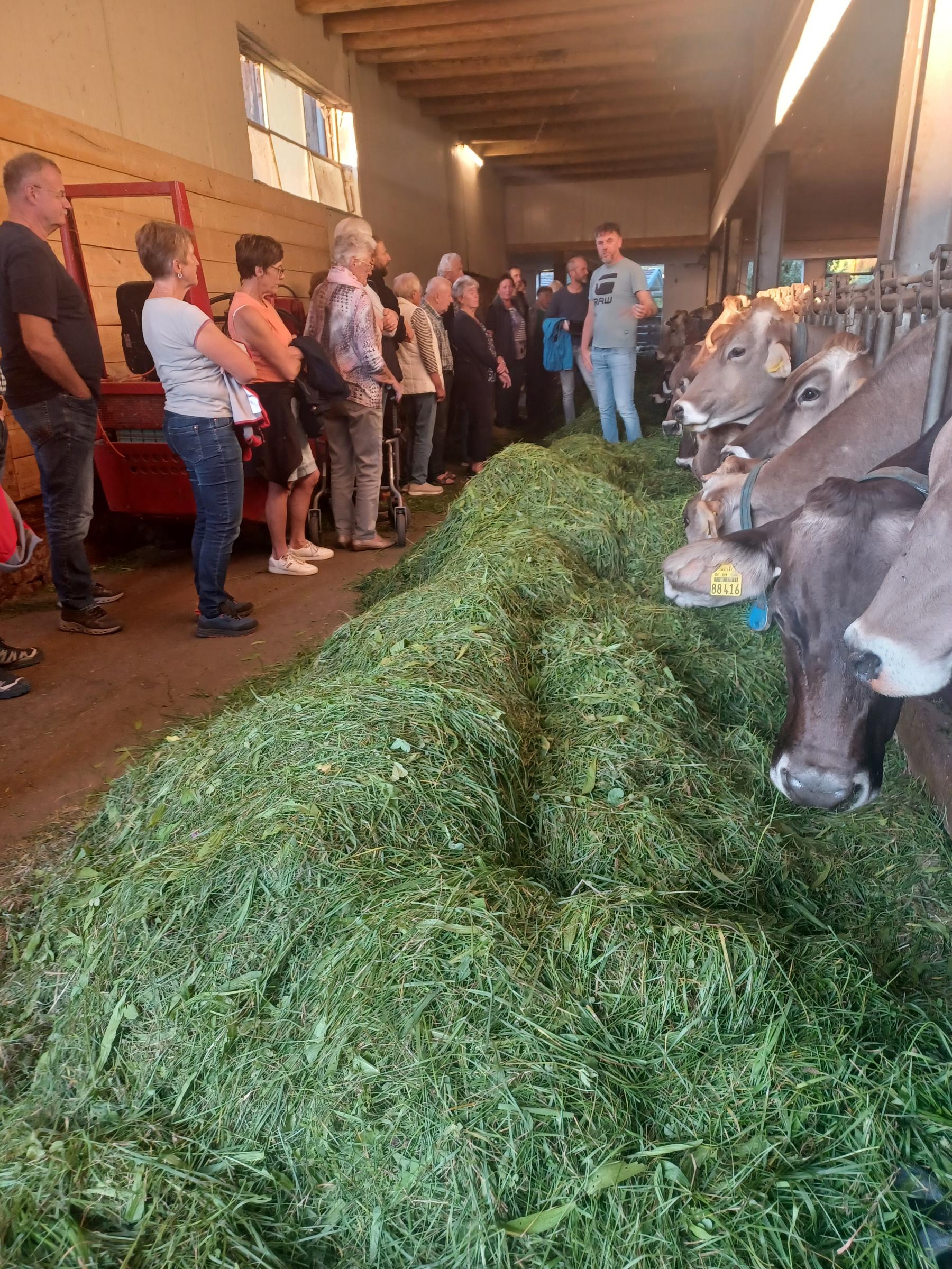 Anschließend war bei hofeigenem Leberkäse und erfrischenden Getränke Gelegenheit zum Austausch. Schnell entwickelte sich eine Diskussion darüber, wie sich die Landwirtschaft aber auch das Angebot an regionalen Lebensmittel in den letzten Jahren stark verändert haben – und wie jeder Einzelne Einfluss nehmen kann, etwa indem man zum Beispiel den Wirt gezielt auf regionale Produktquellen anspricht oder beim Einkauf auf Herkunft achtet. Ein regionaler Bezug der Produkte Milch, Fleisch, Eiern und Kartoffeln, war den Teilnehmern besonders wichtig. Diese Lebensmittel beziehen viele Verbraucher in Verkaufshäuschen und sogenannten „Regiomaten“ in der unmittelbaren Umgebung. Außerdem wurde betont, wie wertvoll es ist, das Engagement und die qualitativ hochwertige Arbeit regionaler Landwirtinnen und Landwirte anzuerkennen und zu unterstützen.