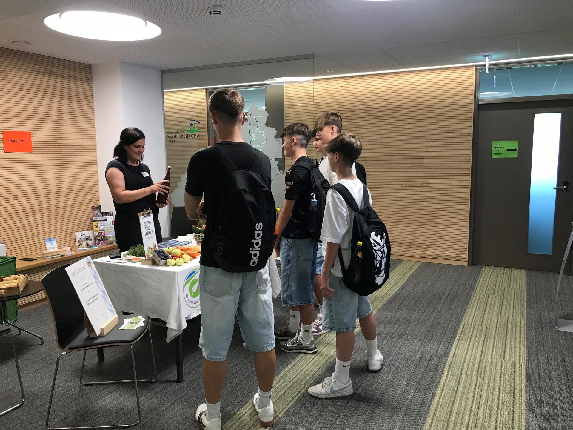 Ein besonderes Highlight war der „Regionaltisch“, an dem die Jugendlichen ihre Sinne und ihr Wissen rund um bio-regionale Lebensmittel testen konnten. Bei „Schmecke deinen Landkreis“ galt es, die Zutaten eines Smoothies zu erraten – ganz im Zeichen von Regionalität, Saisonalität und biologischem Anbau. Neben Spaß und Geschmack gab’s dabei auch jede Menge Wissenswertes über nachhaltige Ernährung und bio-regionale Produkte.
