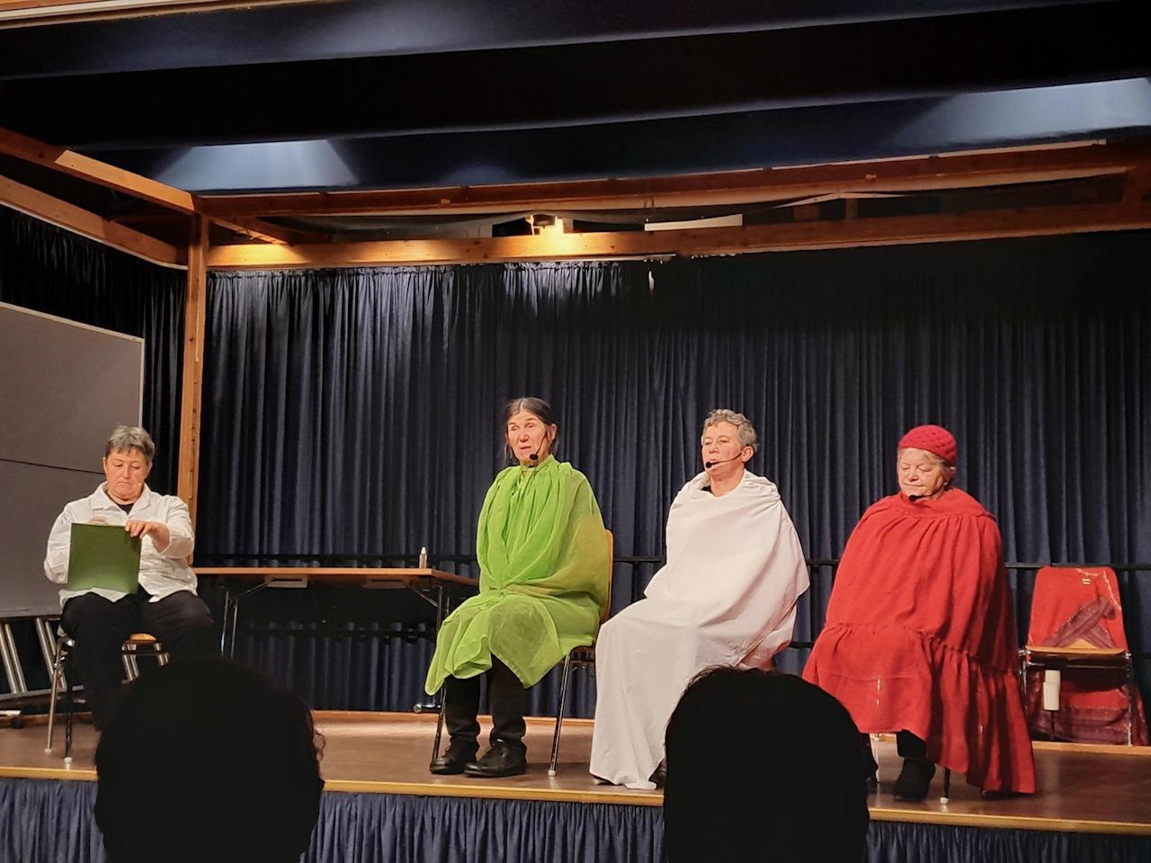 Egal ob die Bäuerin, die detailliert ihren vollen Tagesablauf erzählt, während der Bauer nur fragt, was es Mittag zum Essen gibt, oder verkleidet als Tomate, die an Burnout leidet, weil es sie das ganze Jahr über gibt. Die fünf Frauen, haben sich in ihrem 1,5 stündigen Programm so einiges einfallen lassen. Am 14. November haben sie dieses im Haus der Gemeinde in Egmating präsentiert.