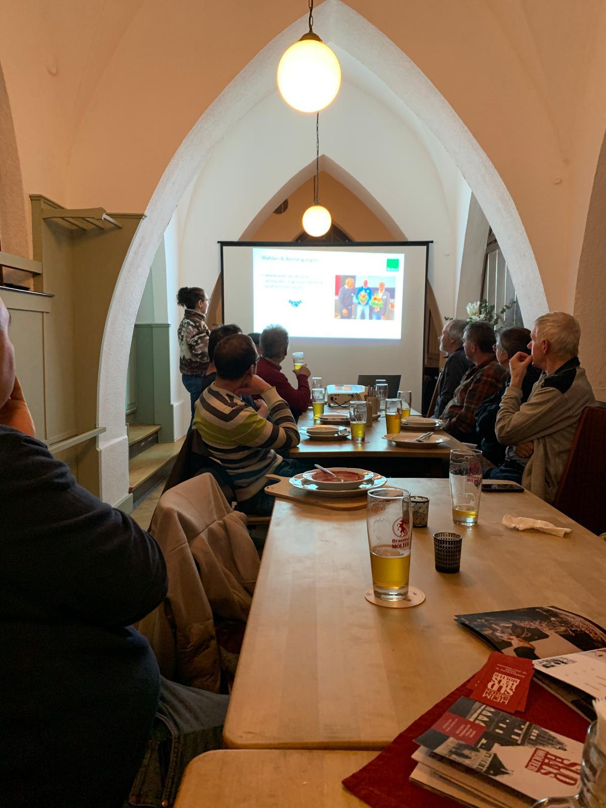 Die Verkostung der frisch gezapften Biere und der fachliche Austausch fanden im Heimgarten in Weiden statt, wo Lino Molter eine zum Brauhaus gehörende Gaststätte betreibt. Dort unterrichteten die Bioland-Berater Franziska Plößl und Sebastian Erl die teilnehmenden Landwirtinnen und Landwirte über Neuerungen und aktuelle Themen des Bioland-Verbands.