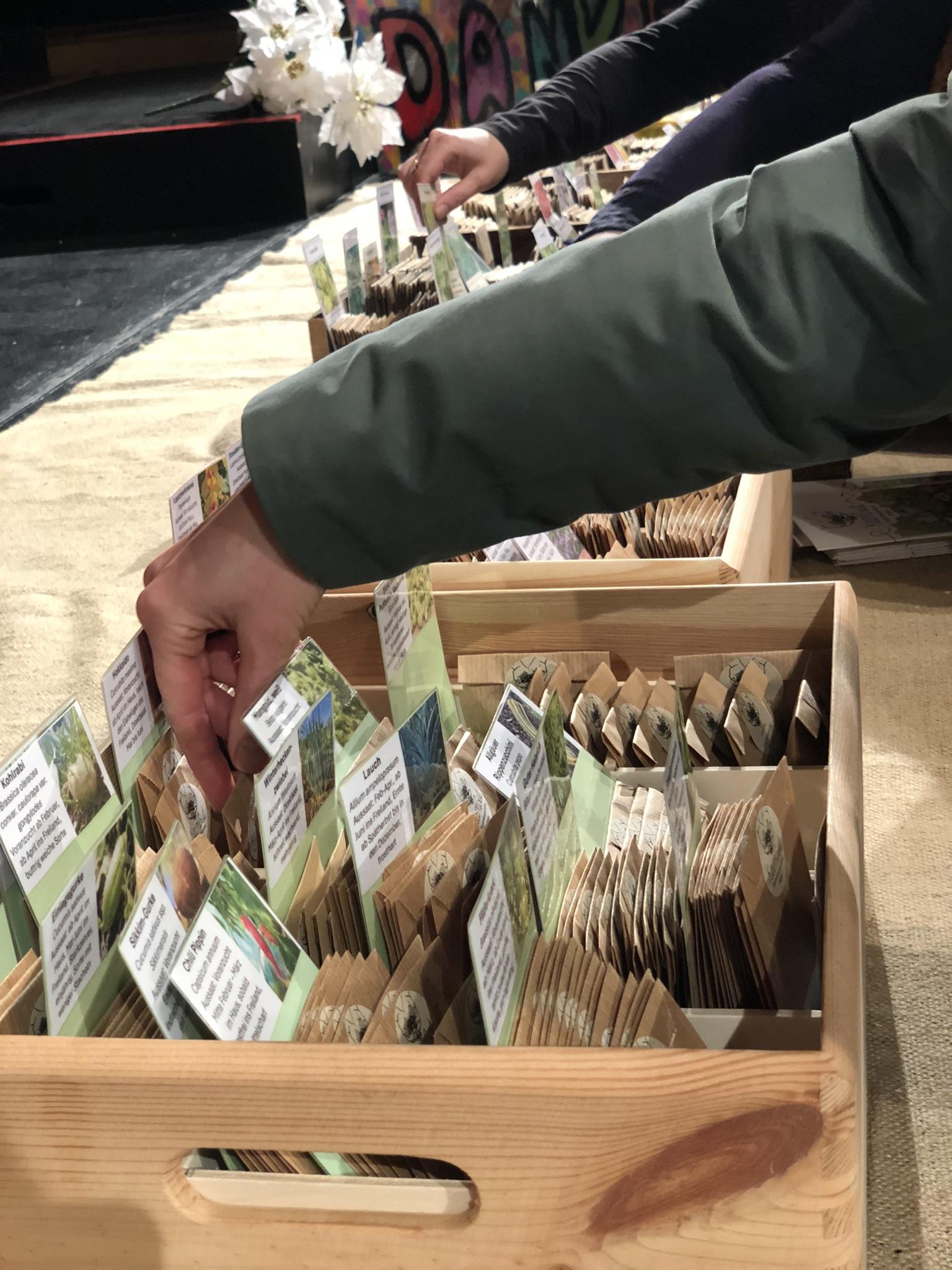 Vor und nach dem Film hatten die Besucherinnen und Besucher die Möglichkeit, am Stand der Saatenkooperative Allgäu regionales Saatgut zu entdecken und zu kaufen. Die Saatenkooperative trägt mit ihrem Engagement zur Erhaltung der verbliebenen Kulturpflanzenvielfalt bei.