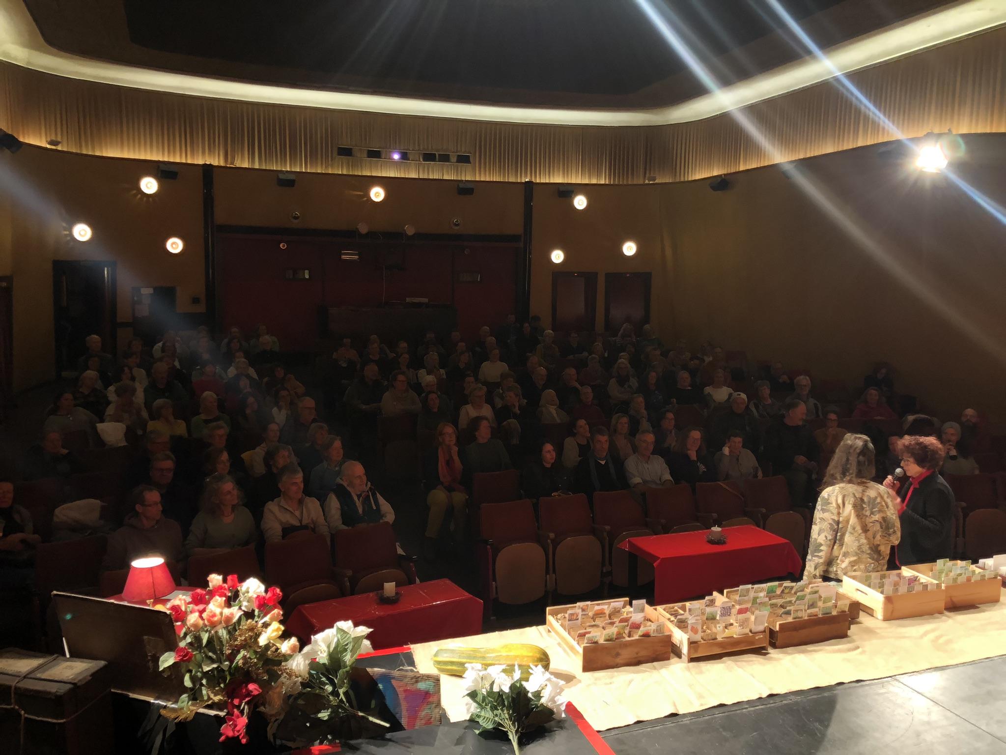 Für die an den Film anschließende Podiumsdiskussion stand mit Lucia Hiemer (Mitglied der Saatenkooperative Allgäu und der Permakultur Akademie im Alpenraum) eine ausgewiesene Expertin zur Verfügung. Sie diskutierte mit dem interessierten Publikum über die Bedeutung von Saatgutvielfalt und regional angepassten Sorten. „Wir vermehren Sorten, die in unseren Regionen zum Kulturgut gehören und darüber hinaus etablieren wir auch samenfeste Sorten aus anderen Gegenden und passen diese an unsere klimatischen Bedingungen an. Der Anfang unserer Ernährung liegt im Saatgut, dieses gehört in die Hände der Verbraucher, so tragen wir ein kleines Stück zur Ernährungssouveränität bei. Vor rund 100 Jahren galt Saatgut aus höheren Lagen als besonders hochwertig. Sorten aus dem Allgäu waren oft robuster als Saatgut aus klassischen Gunststandorten“, erläuterte Lucia Hiemer dem Publikum.