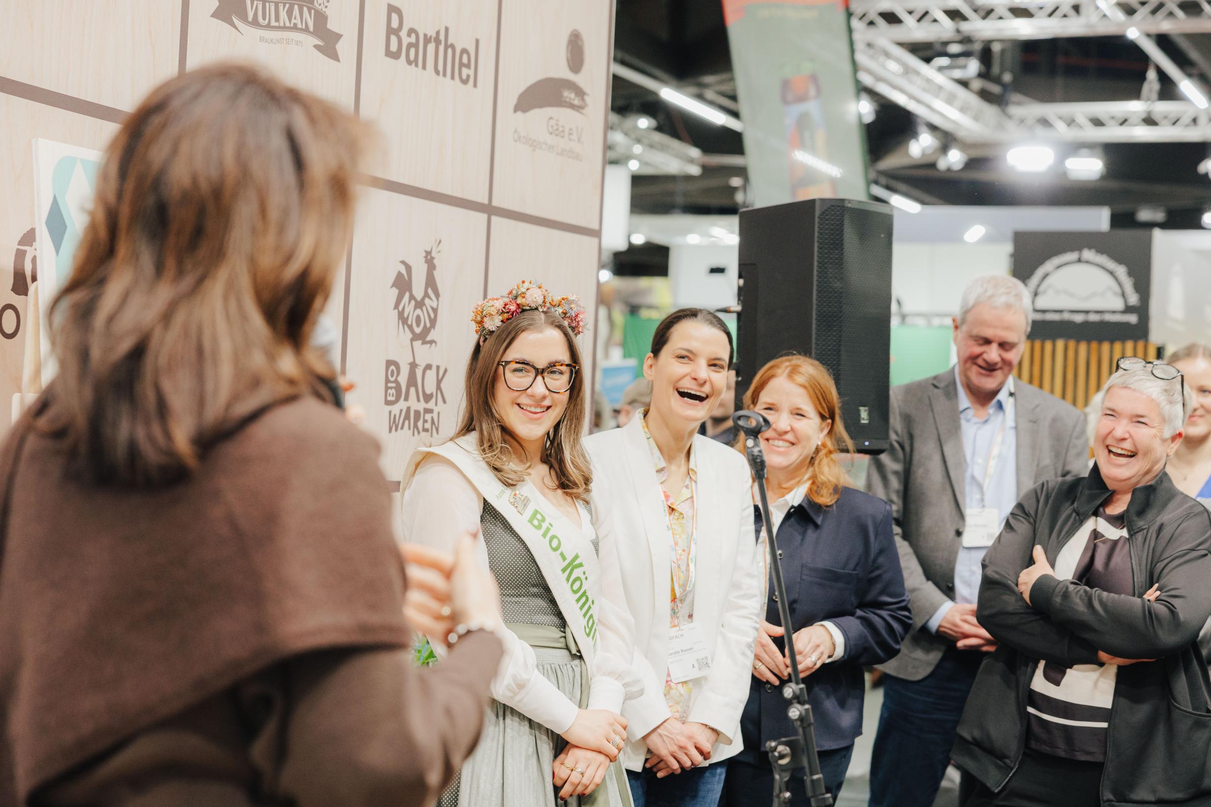 Gerne überreichte Michaela Kaniber, die bayerische Staatsministerin für Ernährung, Landwirtschaft, Forsten und Tourismus, zusammen mit Thomas Lang, 1. Vorsitzender der LVÖ Bayern und der bayerischen Bio-Königin Anna-Lena II. diese Auszeichnung.