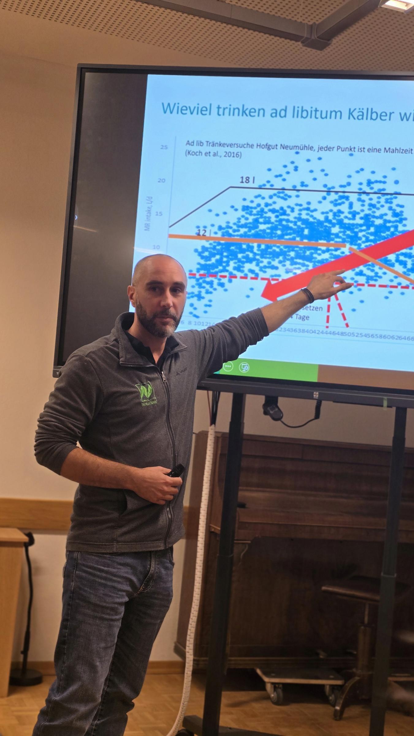 Sebastian Wagner (Naturland) stellte in seinem Vortrag die professionelle Fütterung und Aufzucht zu gesunden und leistungsfähigen Mastfressern vor. Hauptaugenmerk dabei ist, das Tier von Anfang bis zum Ende gesund und ausreichend versorgt zu wissen.