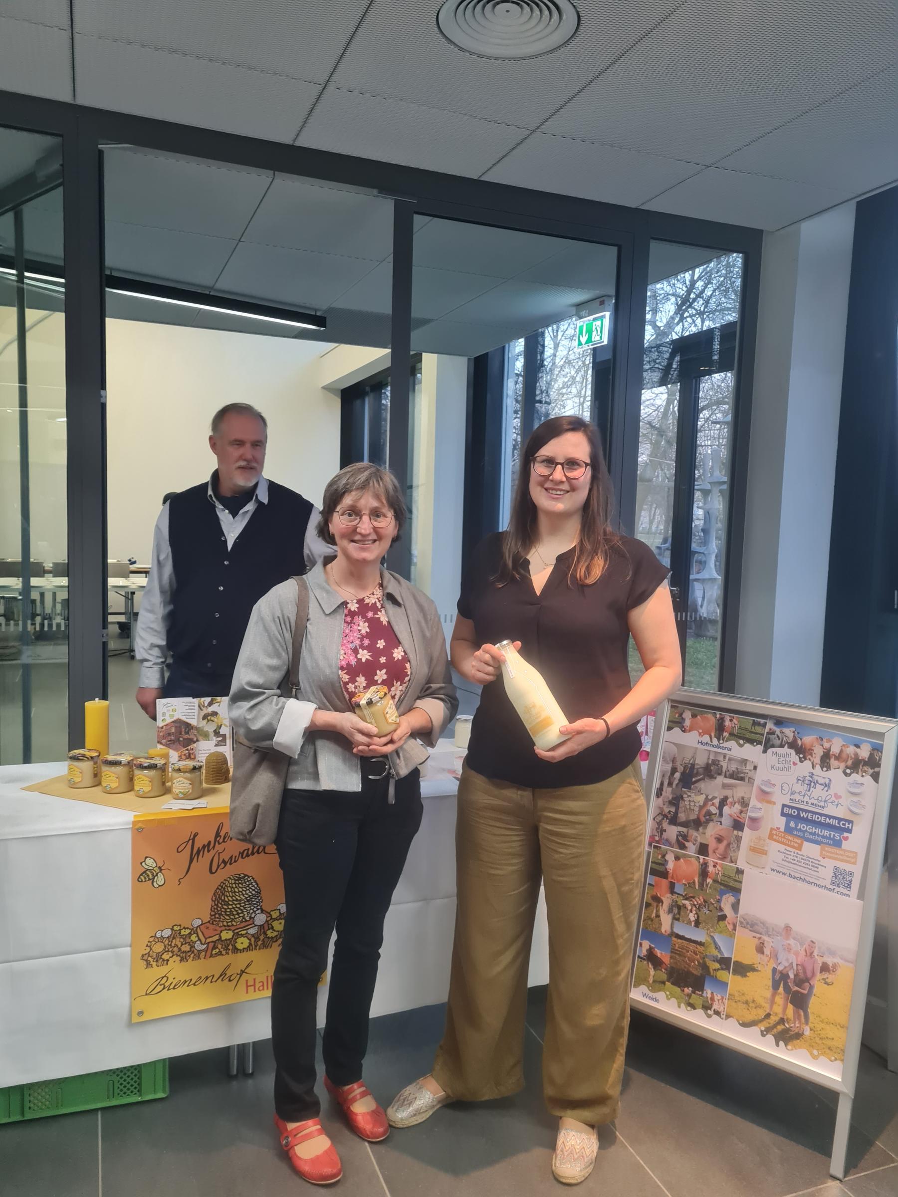 Direktvermarkter aus der Region, welche die Berufsschule für den Projektabend belieferten, hatten die Möglichkeit, ihre Betriebe im Foyer vorzustellen.