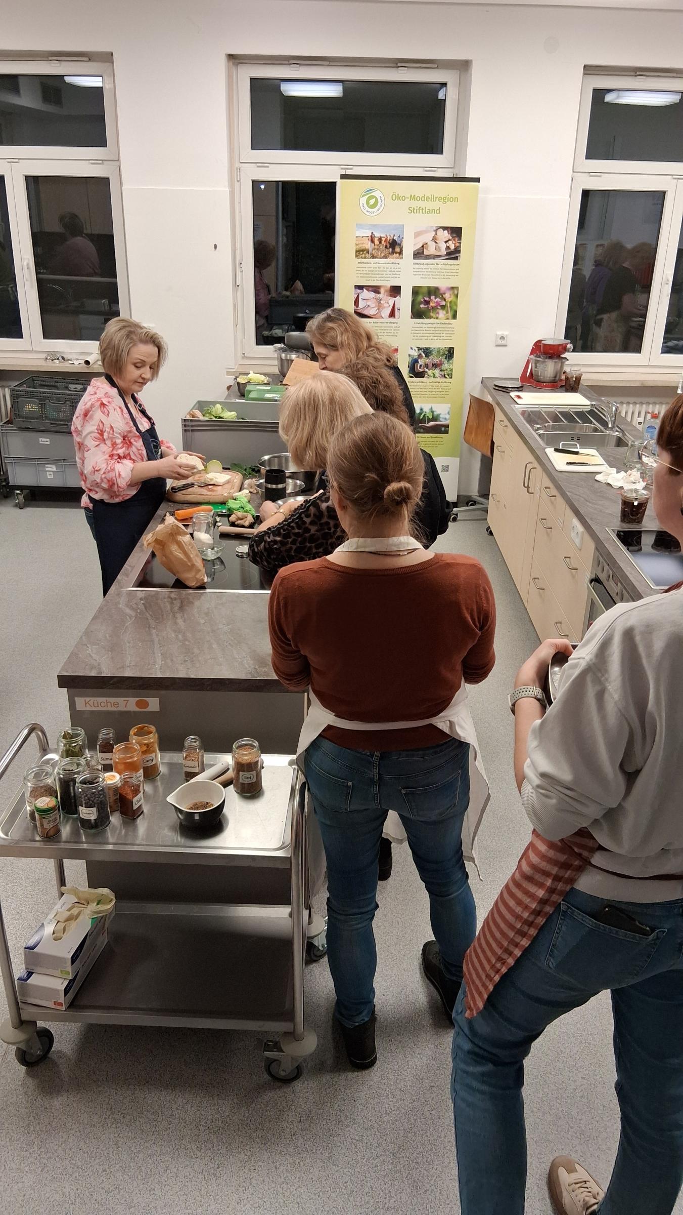 Bevor die Teilnehmer selbst handanlegen durften gab es eine kleine Einführung in die Thematik. Projektmanagerin Antje Grüner gab wertvolle Tipps und den Appell zu schauen woher das Gemüse kommt. Dann übergab sie auch schon das Wort an Frau Sylvia Mauermeier. Sie hatte allerlei schon fertig Eingewecktes mit dabei und erzählte den Teilnehmerinnen und dem Teilnehmer auf was man alles Achten sollte. Doch bevor die Mannschaft starten konnte, wurden die Köstlichkeiten, welche die Refertin mitgebracht hatte, probiert.