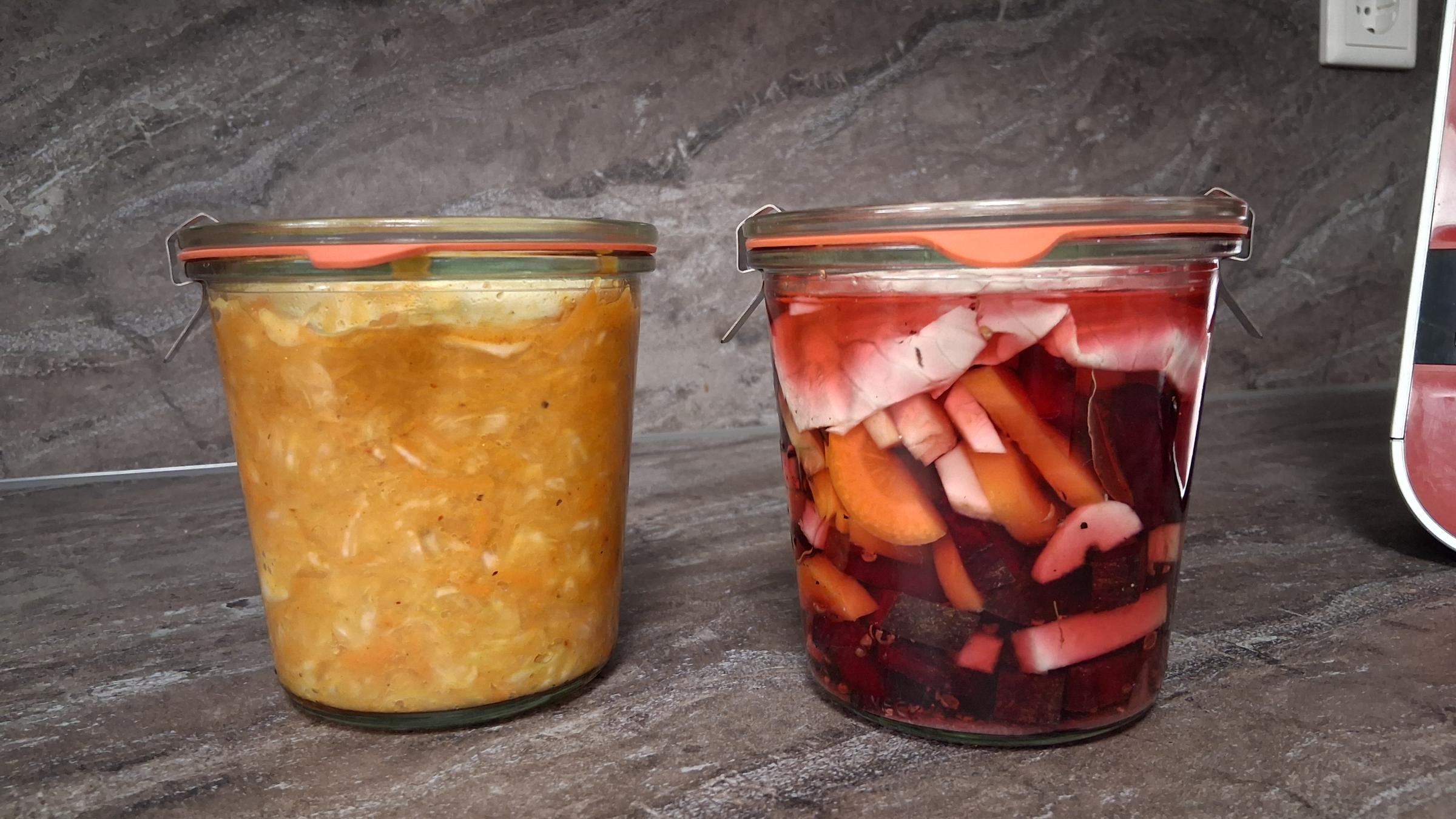 Wer kennts es auch?! Man kauft beim Bio-Landwirt oder Wochenmarkt Gemüse ein. Mitglieder von Gemüse-Solawies bekommen im ein- oder zweiwöchigen Rhythmus Ihre Gemüsekiste. Und dann gibt es noch die, die ihr Gemüse selbst im Garten ranziehen,pflegen und hegen und natürlich ernten. Bis hierin super gut und lecker, wenn man dann die Leckereien verarbeitet und zum Mittag verspeist. Aber manchmal hat man auch eine Fülle an Gemüse und man weiß gar nicht mehr so recht wie man es zubereiten soll. Und dann denkt man sich, wir wecken es ein für den Winter. Doch leider muss man oft das Gemüse dazu erhitzen und bei über 40°C gehen die Vitamine hops. Beim Fermentieren ist das Anders. Da kommt das Gemüse pur im rohen Zustand in die Gläser und man nutzt die guten Bakterien auf der Oberseite. Und dann heißt es warten und die Bakterien arbeiten lassen. Herauskommt ein gesundes und dazu super verträgliches Rohkostgemüse mit vielen Inhaltsstoffen und Vitaminen, die vor allem dem Darm richtig gut tuen.