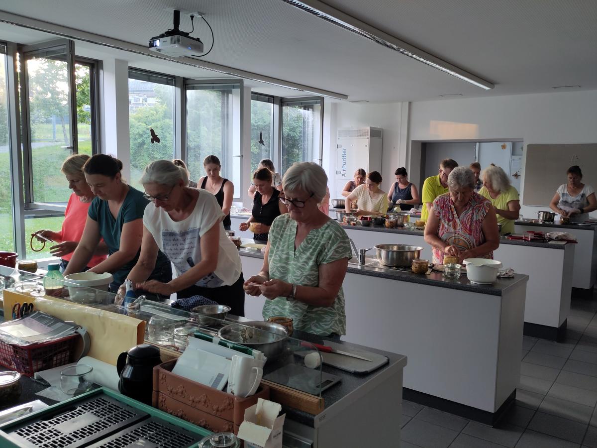 Dies und noch vieles mehr war Inhalt des Fermentations-Workshops in der Öko-Modellregion Passauer Oberland, der Anfang Juli in der Realschule Tittling mit 18 Teilnehmerinnen stattfand. Dass das Thema aktuell und gefragt ist zeigt sich daran, dass der Workshop zum dritten Mal in Folge restlos ausgebucht war. „Das Interesse am Haltbarmachen und Fermentieren ist groß. Selbst kleine Restmengen an Gemüse lassen sich so zu herrlichen Salaten fermentieren“, sagt Pia Auberger, Projektmanagerin der Öko-Modellregion Passauer Oberland. Ernährungscoach und Biobäuerin Lena Fischl vom Gemüsehof Fischl in Kirchberg vorm Wald empfiehlt jeden Tag eine kleine Menge fermentierter Lebensmittel zu essen.