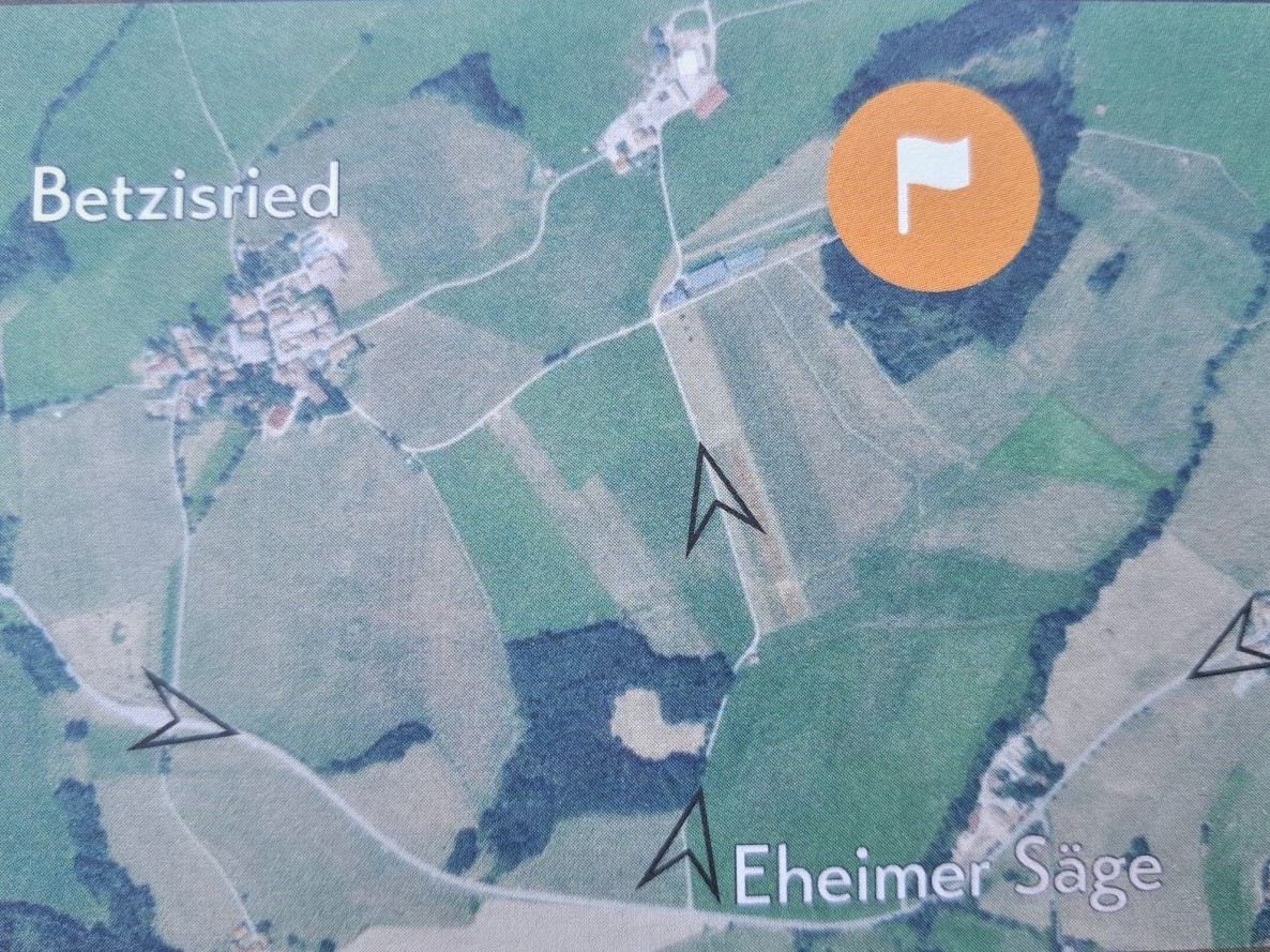 Ort der Besichtigung ist der Gemüseanbau 600 m östlich vom Ort Betzisried (siehe Skizze)