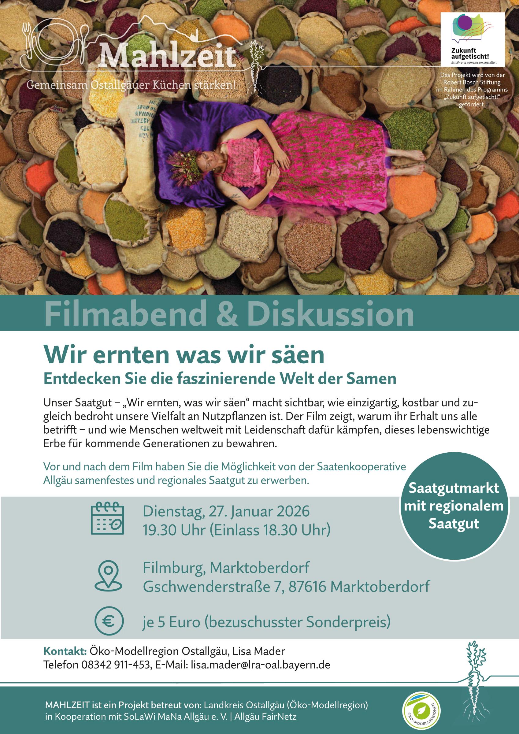 Vor und nach dem Film haben Sie die Möglichkeit von der Saatenkooperative Allgäu samenfestets und regionales Saatgut zu erwerben.