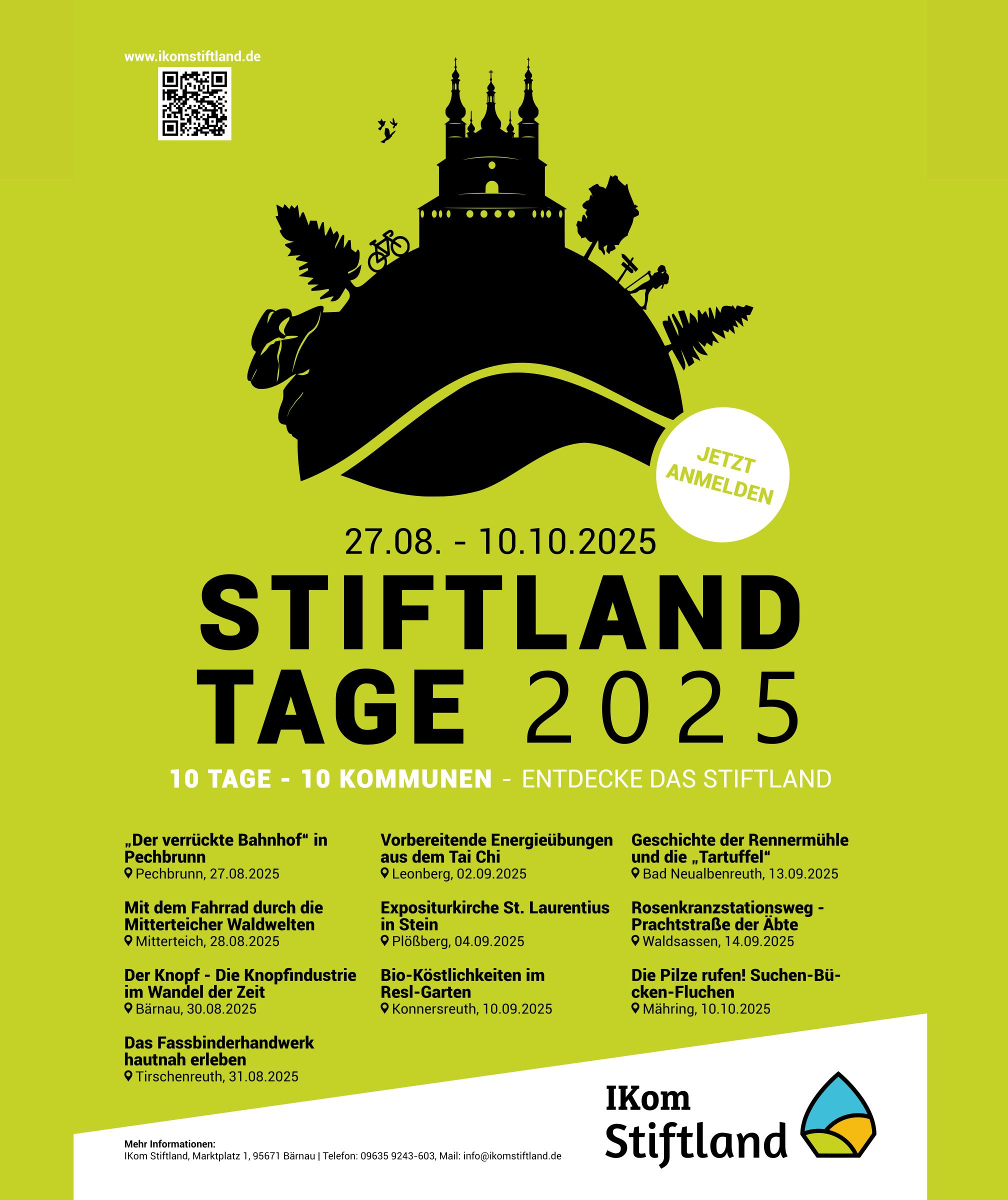 Auch 2025 haben wir wieder 10 tolle Veranstaltungen für Sie geplant. Getreu dem Motto: 10 Tage - 10 Kommunen, können sie das Stiftland von einer ganz anderen Seite kennenlernen.