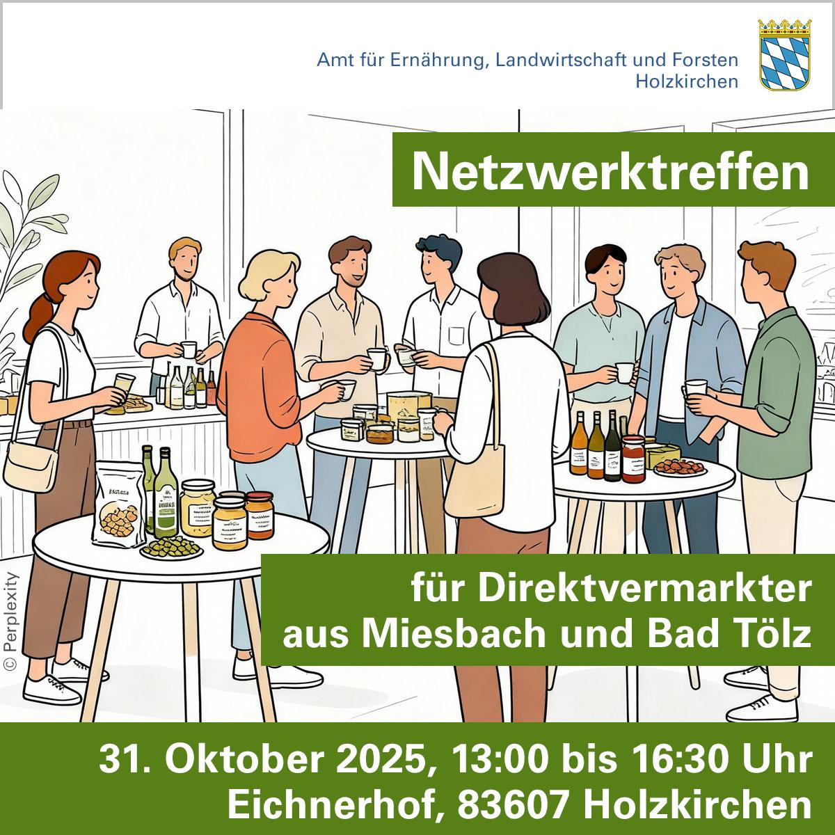 Hiermit laden wir Sie herzlich ein zu unserem ersten Netzwerktreffen Direktvermarktung am 31.10.2025. Bitte melden Sie sich unter poststelle@aelf-hk.bayern.de an